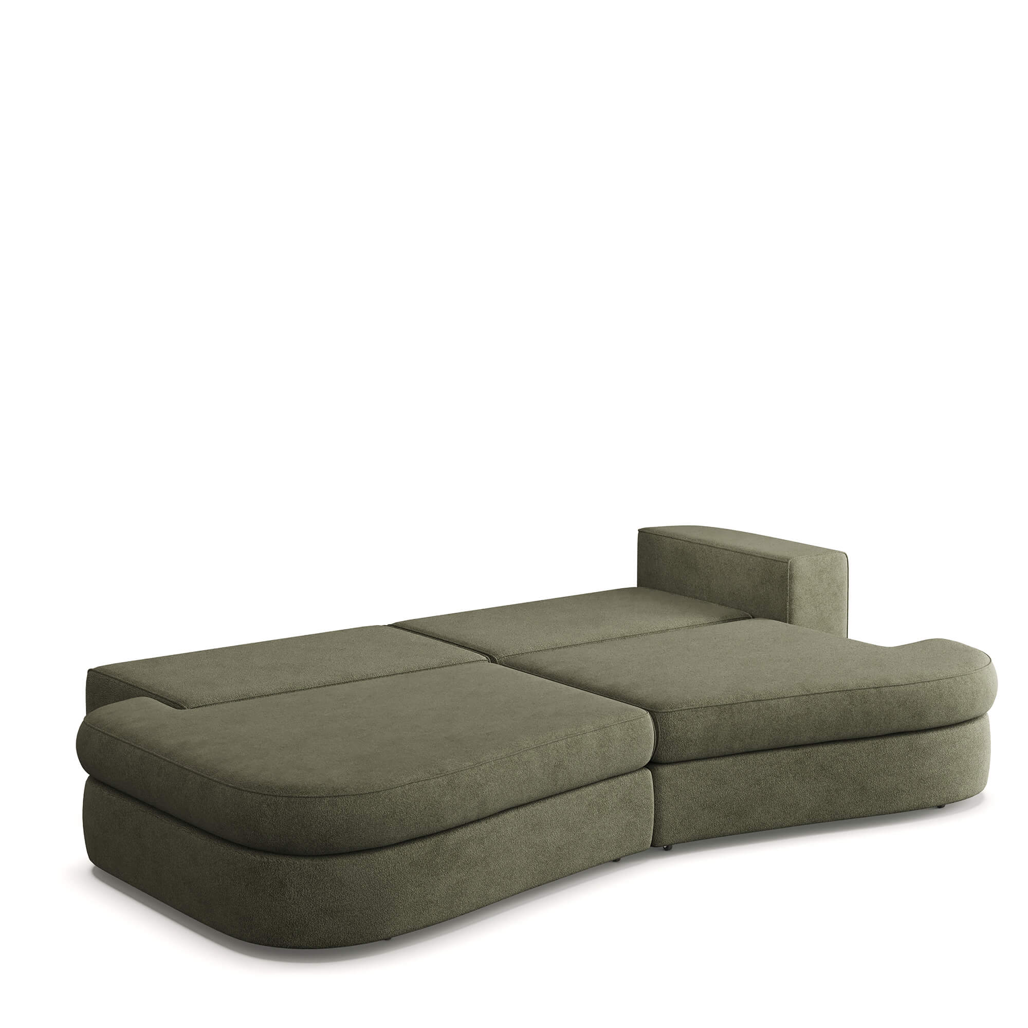 Сиденье приподнимается вверх и выкатывается вперед, после чего можно сложить спинку дивана и получить широкое спальное место с небольшим стыком между двумя частями по центру. Способ раскладывания исключает повреждение напольного покрытия даже при ежедневной трансформации дивана.