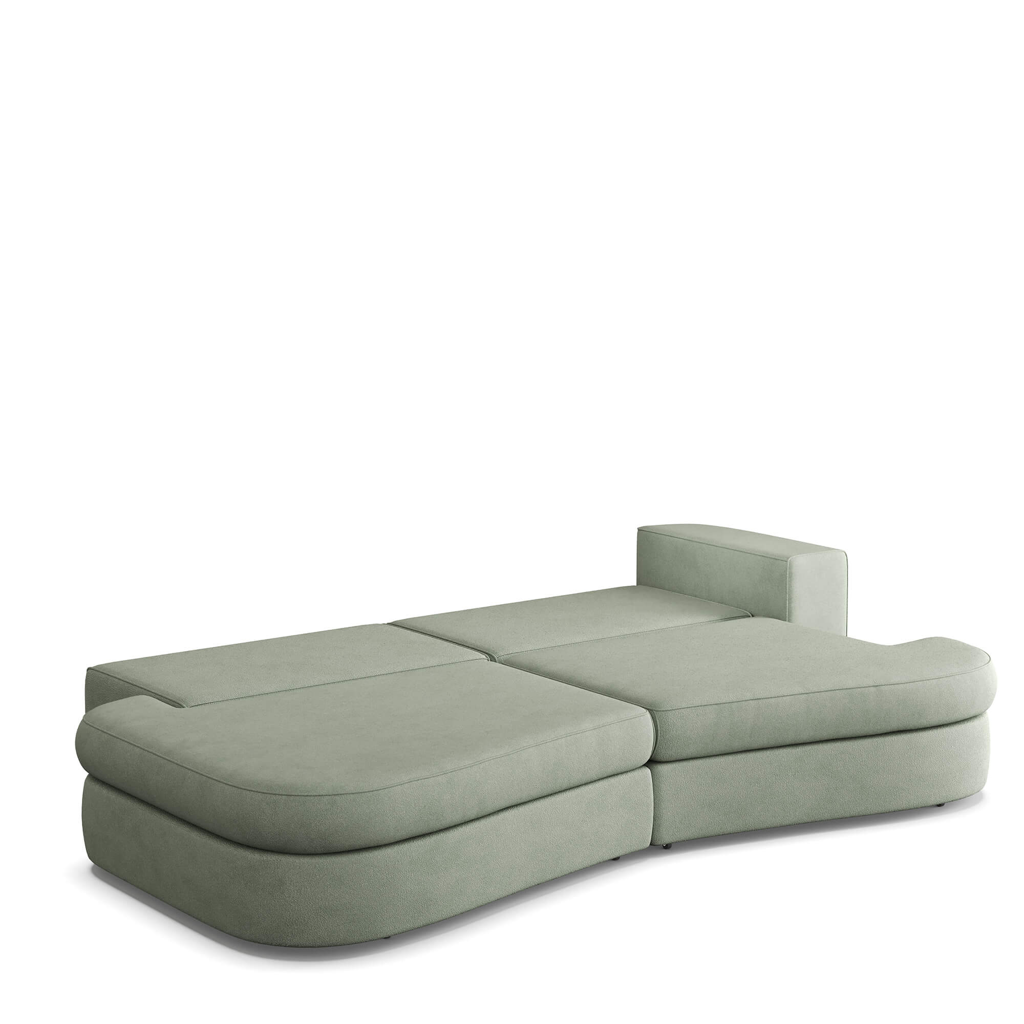 Сиденье приподнимается вверх и выкатывается вперед, после чего можно сложить спинку дивана и получить широкое спальное место с небольшим стыком между двумя частями по центру. Способ раскладывания исключает повреждение напольного покрытия даже при ежедневной трансформации дивана.