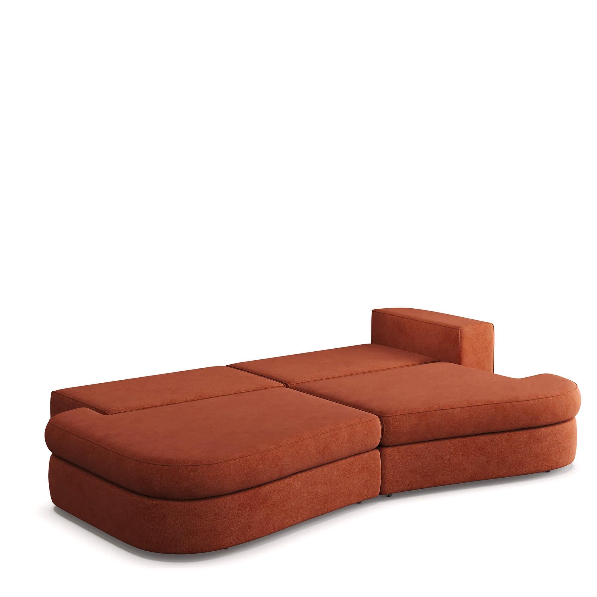 Сиденье приподнимается вверх и выкатывается вперед, после чего можно сложить спинку дивана и получить широкое спальное место с небольшим стыком между двумя частями по центру. Способ раскладывания исключает повреждение напольного покрытия даже при ежедневной трансформации дивана.