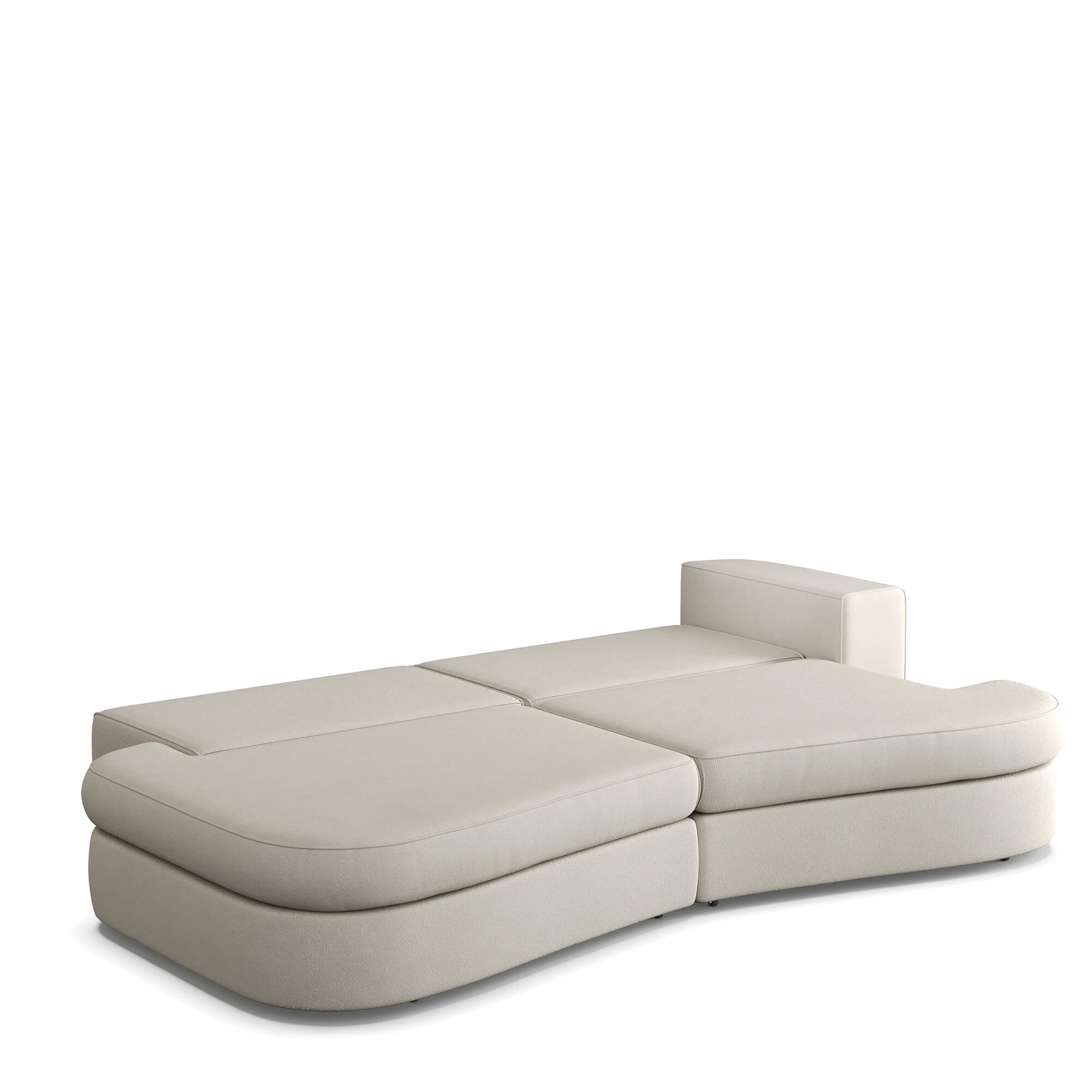 Сиденье приподнимается вверх и выкатывается вперед, после чего можно сложить спинку дивана и получить широкое спальное место с небольшим стыком между двумя частями по центру. Способ раскладывания исключает повреждение напольного покрытия даже при ежедневной трансформации дивана.