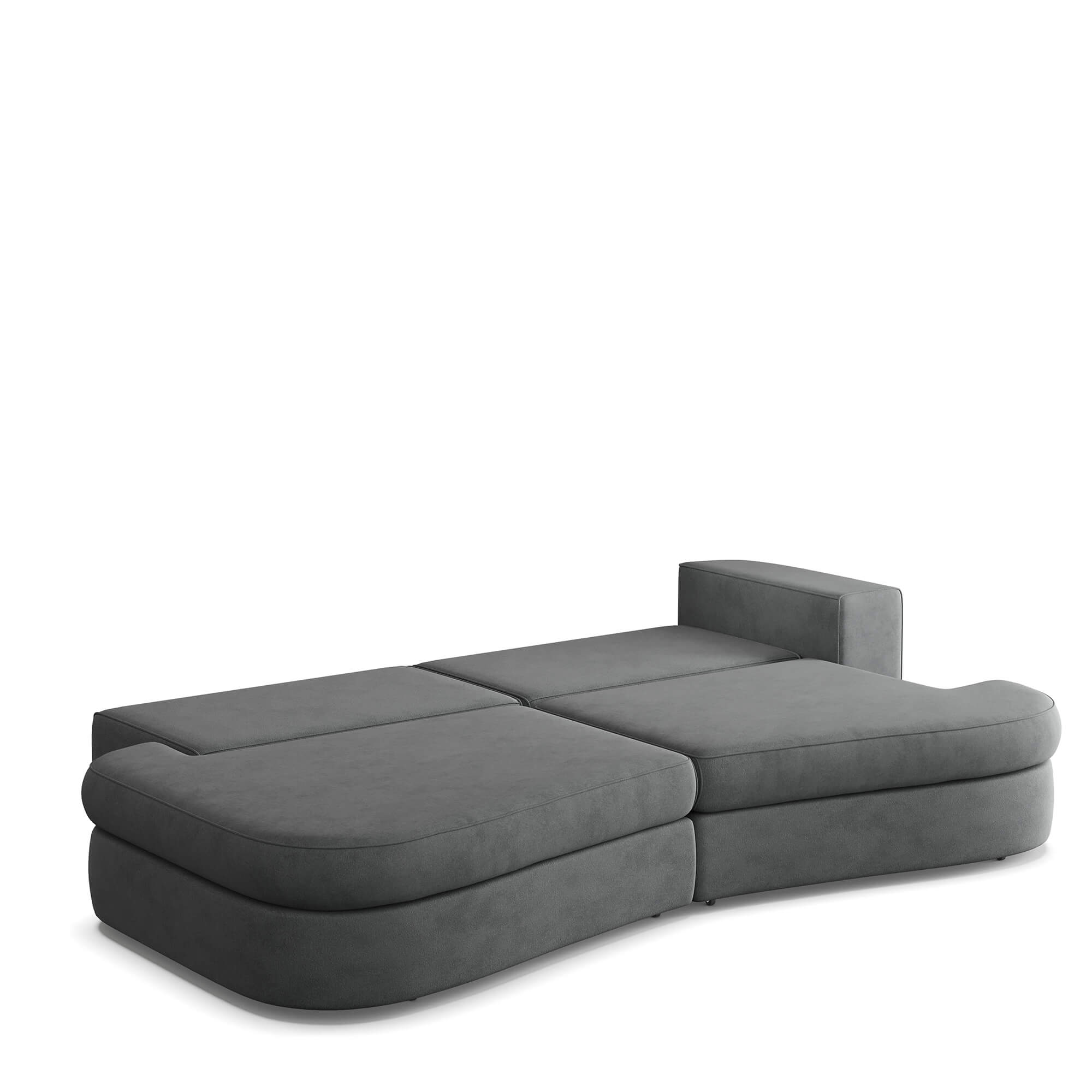 Сиденье приподнимается вверх и выкатывается вперед, после чего можно сложить спинку дивана и получить широкое спальное место с небольшим стыком между двумя частями по центру. Способ раскладывания исключает повреждение напольного покрытия даже при ежедневной трансформации дивана.