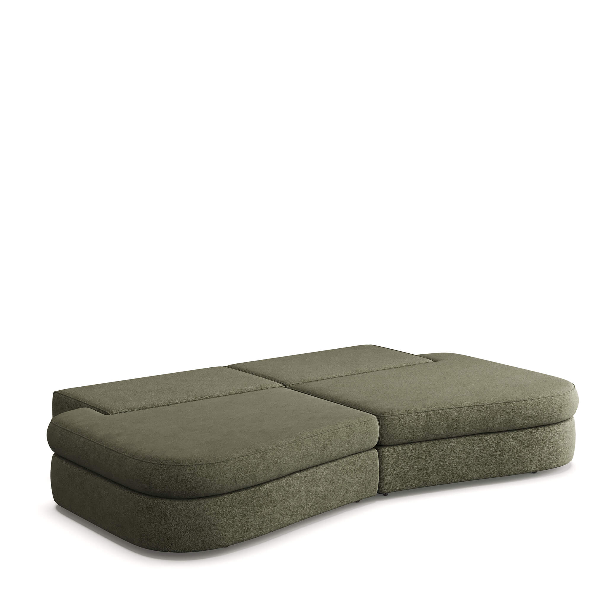 Удобный диван с низкой глубокой посадкой выполнен в обивке нежным микровелюром. Диван оснащен механизмом «Еврокнижка». Его сиденье приподнимается вверх и выкатывается вперед, после чего можно сложить спинку дивана и получить широкое спальное место с небольшим стыком между двумя частями по центру. Способ раскладывания исключает повреждение напольного покрытия даже при ежедневной трансформации дивана. Модель можно использовать для ежедневного сна. Под сиденьями дивана располагаются бельевые ящики, которые обеспечивают дополнительные места для хранения постельных принадлежностей или объемных вещей.