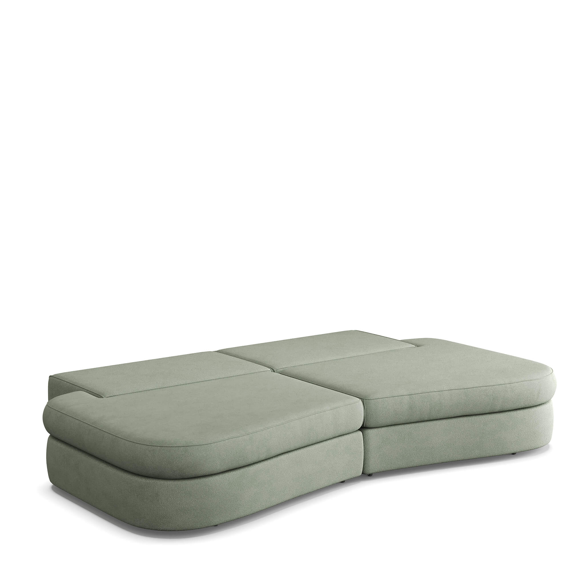 Сиденье приподнимается вверх и выкатывается вперед, после чего можно сложить спинку дивана и получить широкое спальное место с небольшим стыком между двумя частями по центру. Способ раскладывания исключает повреждение напольного покрытия даже при ежедневной трансформации дивана.