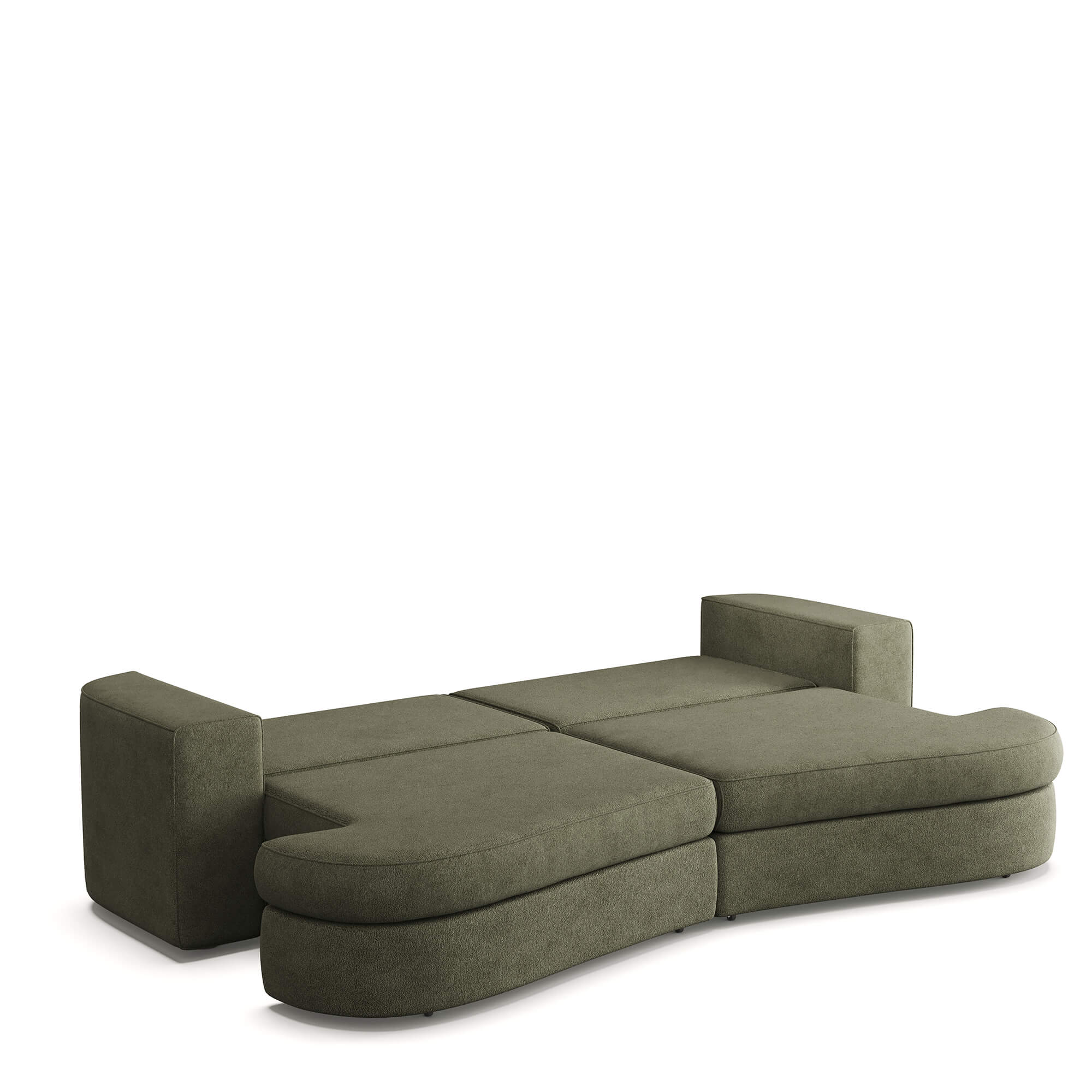 Сиденье приподнимается вверх и выкатывается вперед, после чего можно сложить спинку дивана и получить широкое спальное место с небольшим стыком между двумя частями по центру. Способ раскладывания исключает повреждение напольного покрытия даже при ежедневной трансформации дивана.