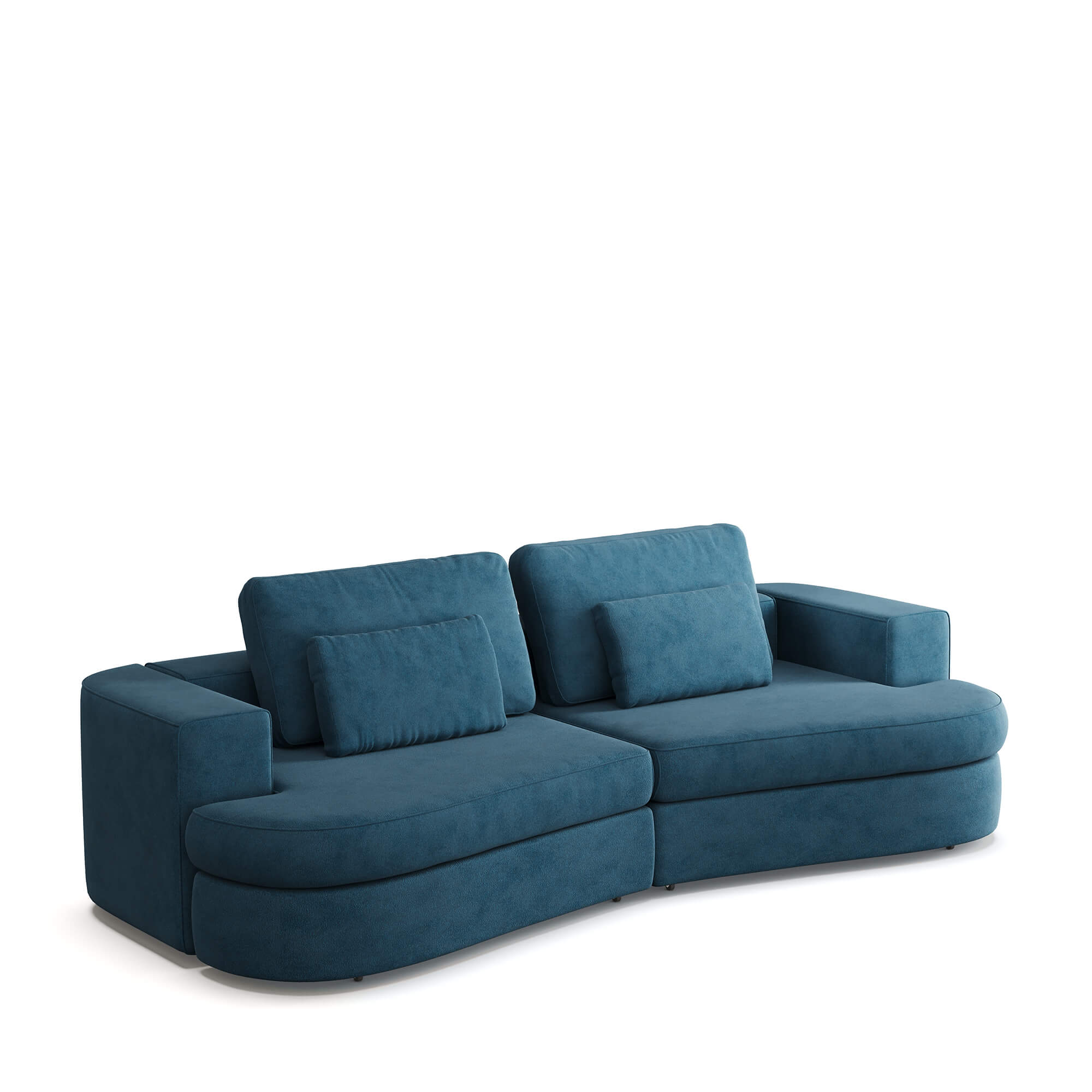 Удобный диван с низкой глубокой посадкой оснащен двумя подлокотниками. В качестве материала обивки в нем используется нежный микровелюр (несколько оттенков на выбор). Диван оснащен механизмом «Еврокнижка». Его сиденье приподнимается вверх и выкатывается вперед, после чего можно сложить спинку дивана и получить широкое спальное место с небольшим стыком между двумя частями по центру. Способ раскладывания исключает повреждение напольного покрытия даже при ежедневной трансформации дивана. Модель можно использовать для ежедневного сна. Под сиденьями дивана располагаются бельевые ящики, которые обеспечивают дополнительные места для хранения постельных принадлежностей или объемных вещей.