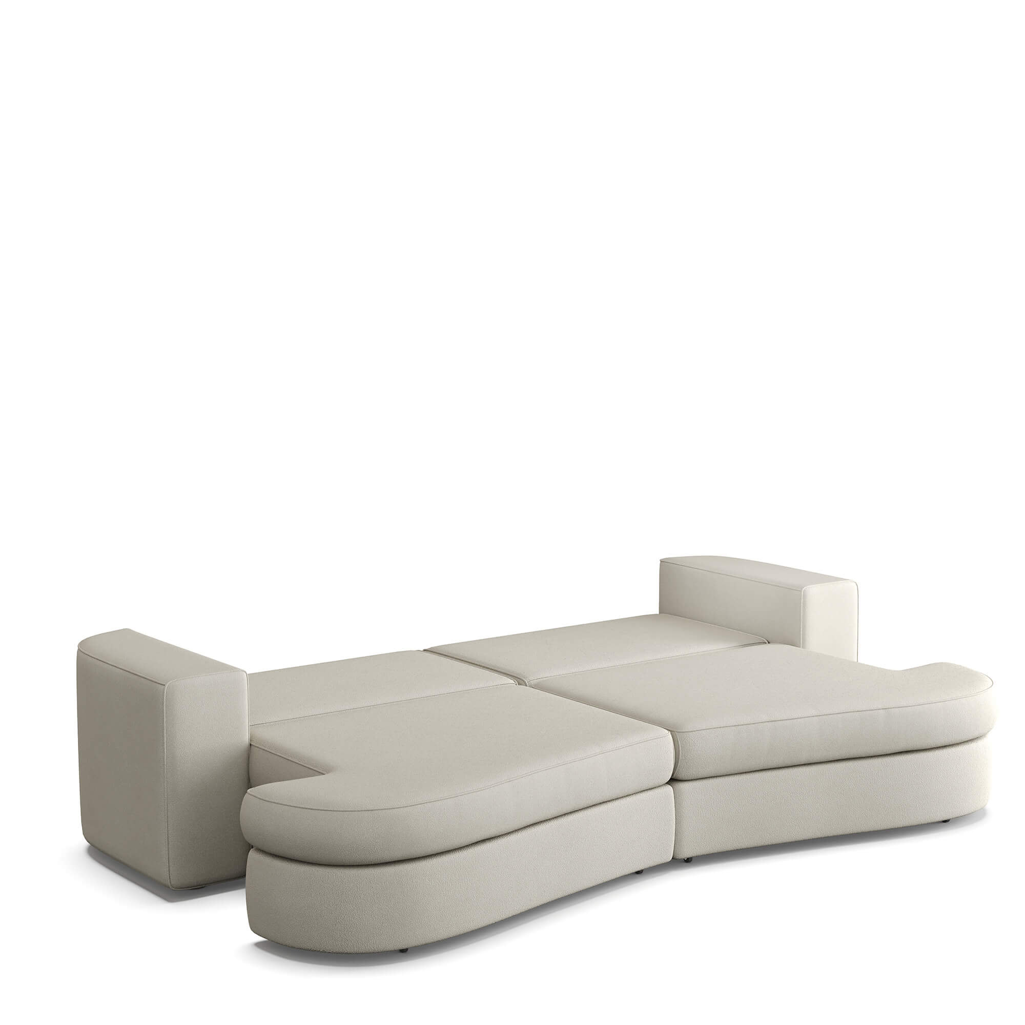 Сиденье приподнимается вверх и выкатывается вперед, после чего можно сложить спинку дивана и получить широкое спальное место с небольшим стыком между двумя частями по центру. Способ раскладывания исключает повреждение напольного покрытия даже при ежедневной трансформации дивана.