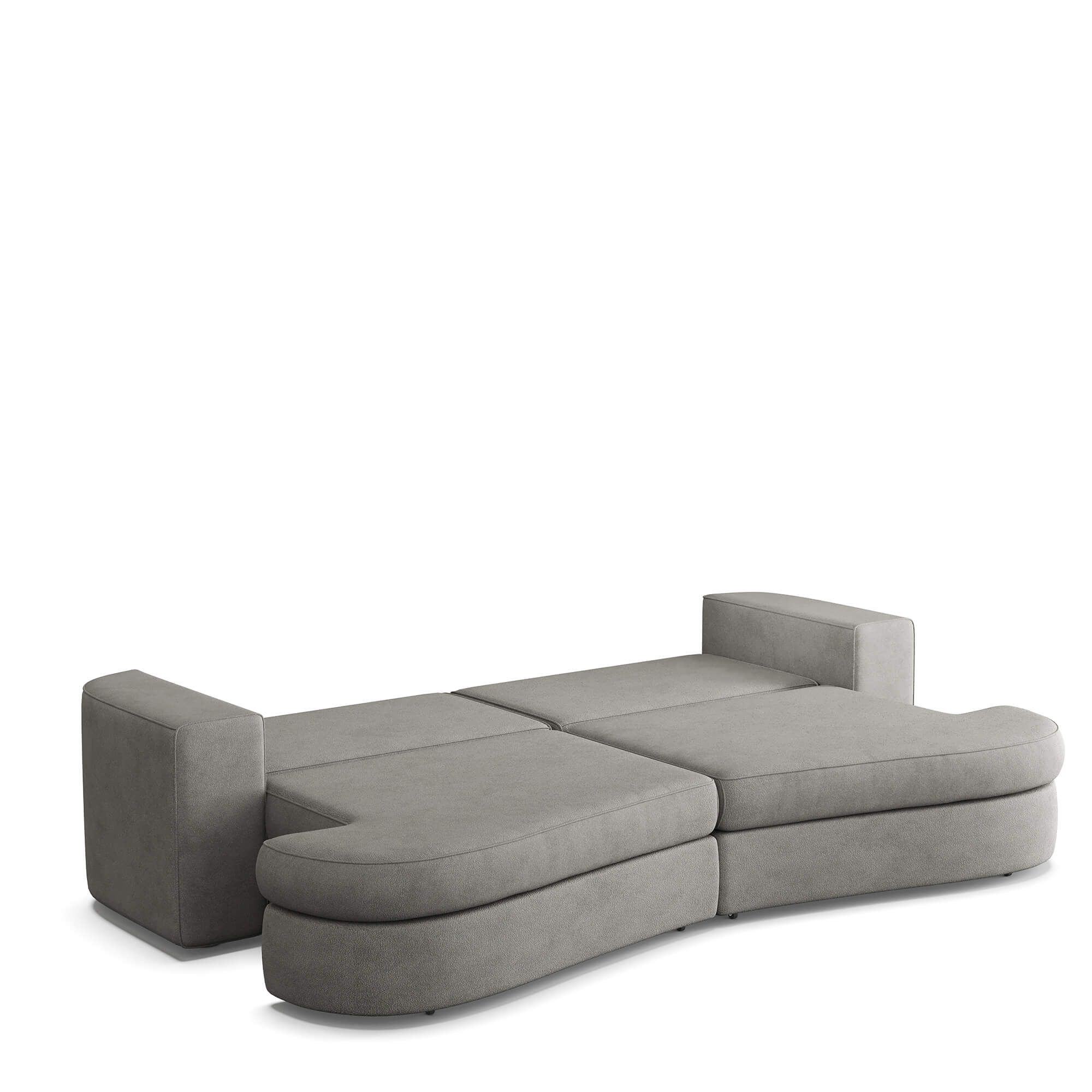 Удобный диван с низкой глубокой посадкой оснащен двумя подлокотниками. В качестве материала обивки в нем используется нежный микровелюр (несколько оттенков на выбор). Диван оснащен механизмом «Еврокнижка». Его сиденье приподнимается вверх и выкатывается вперед, после чего можно сложить спинку дивана и получить широкое спальное место с небольшим стыком между двумя частями по центру. Способ раскладывания исключает повреждение напольного покрытия даже при ежедневной трансформации дивана. Модель можно использовать для ежедневного сна. Под сиденьями дивана располагаются бельевые ящики, которые обеспечивают дополнительные места для хранения постельных принадлежностей или объемных вещей.