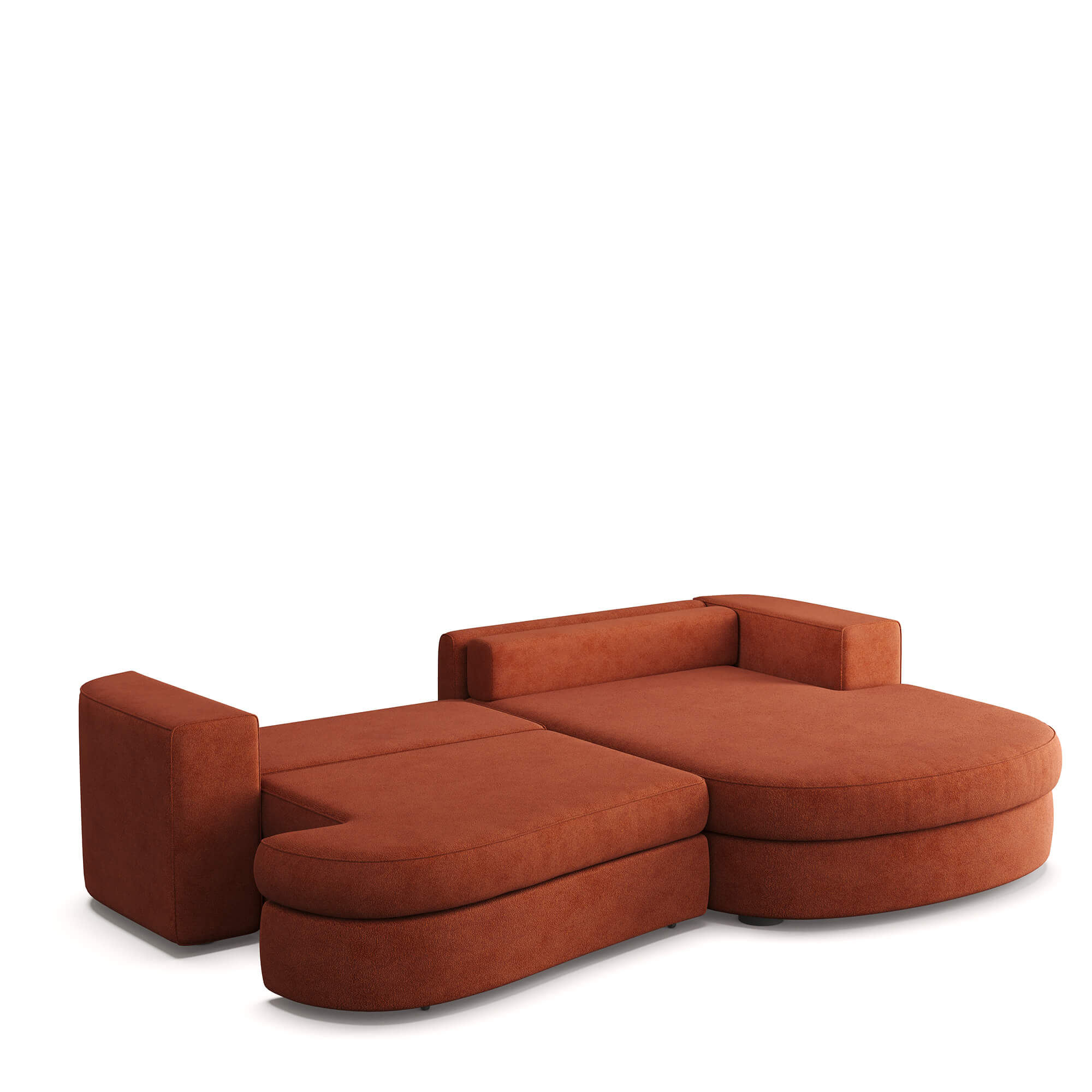 Сиденье приподнимается вверх и выкатывается вперед, после чего можно сложить спинку дивана и получить широкое спальное место с небольшим стыком между двумя частями по центру. Способ раскладывания исключает повреждение напольного покрытия даже при ежедневной трансформации дивана.