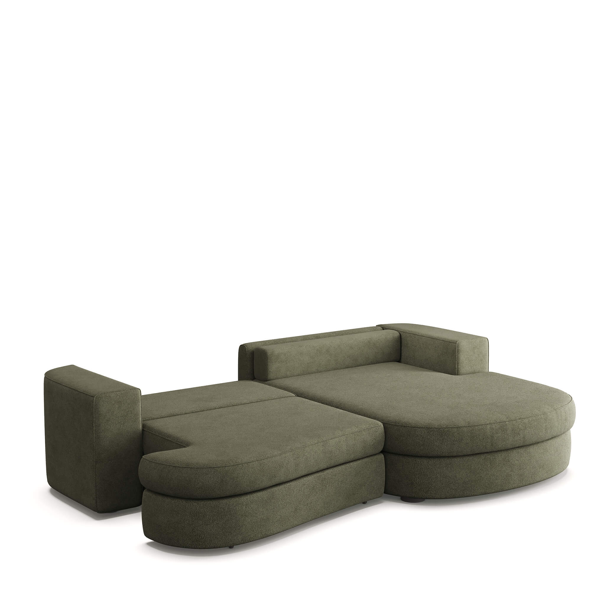 Удобный диван с низкой глубокой посадкой оснащен правой оттоманкой. В качестве материала обивки в нем используется нежный микровелюр (несколько оттенков на выбор). Диван оснащен механизмом «Еврокнижка». Его сиденье приподнимается вверх и выкатывается вперед, после чего можно сложить спинку дивана и получить широкое спальное место с небольшим стыком между двумя частями по центру. Способ раскладывания исключает повреждение напольного покрытия даже при ежедневной трансформации дивана. Модель можно использовать для ежедневного сна.