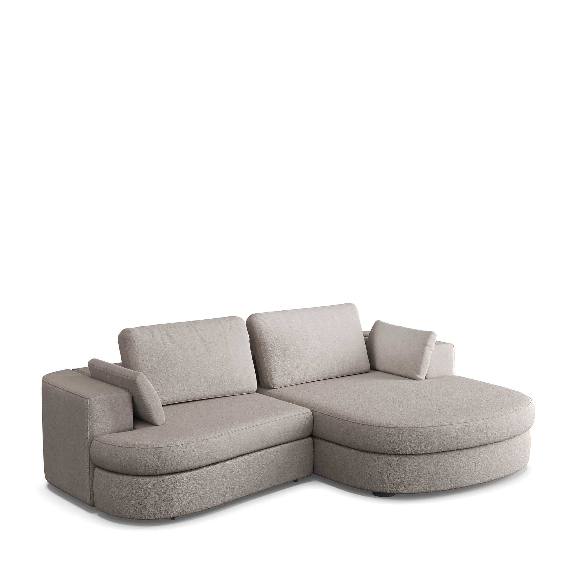 Удобный диван с низкой глубокой посадкой оснащен правой оттоманкой. В качестве материала обивки в нем используется нежный микровелюр (несколько оттенков на выбор). Диван оснащен механизмом «Еврокнижка». Его сиденье приподнимается вверх и выкатывается вперед, после чего можно сложить спинку дивана и получить широкое спальное место с небольшим стыком между двумя частями по центру. Способ раскладывания исключает повреждение напольного покрытия даже при ежедневной трансформации дивана. Модель можно использовать для ежедневного сна.
