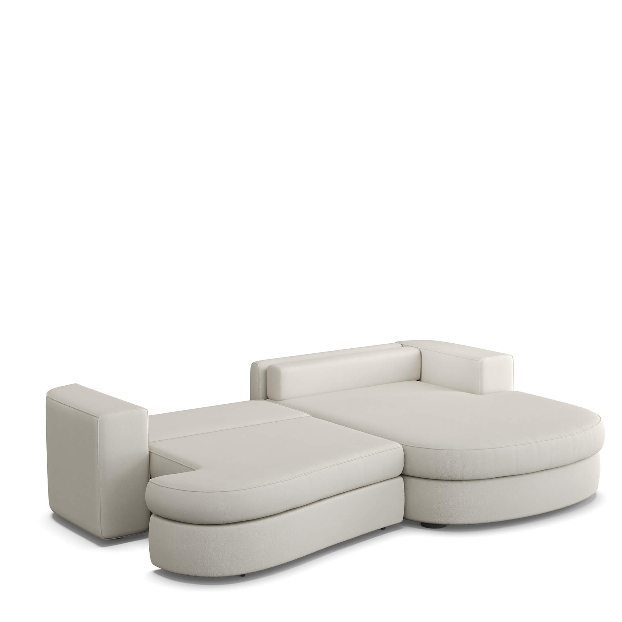 Удобный диван с низкой глубокой посадкой оснащен правой оттоманкой. В качестве материала обивки в нем используется нежный микровелюр (несколько оттенков на выбор). Диван оснащен механизмом «Еврокнижка». Его сиденье приподнимается вверх и выкатывается вперед, после чего можно сложить спинку дивана и получить широкое спальное место с небольшим стыком между двумя частями по центру. Способ раскладывания исключает повреждение напольного покрытия даже при ежедневной трансформации дивана. Модель можно использовать для ежедневного сна.