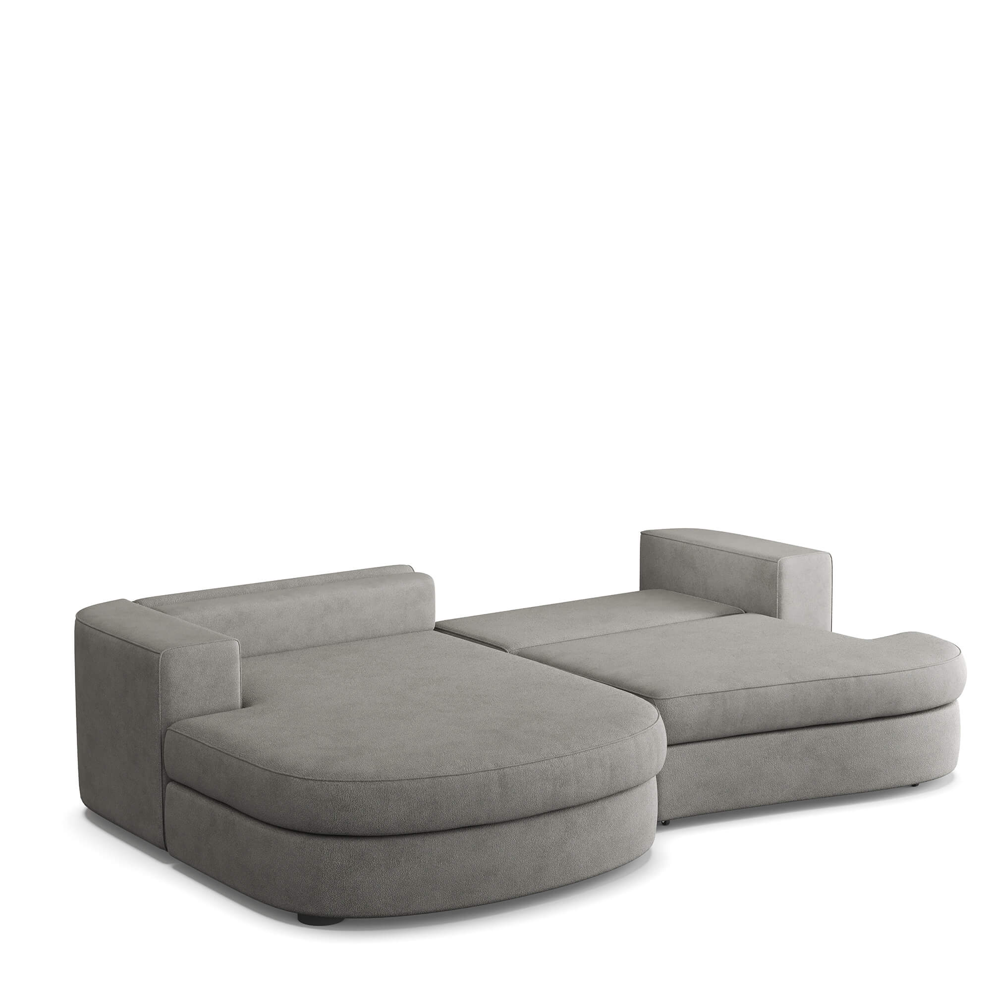 Сиденье приподнимается вверх и выкатывается вперед, после чего можно сложить спинку дивана и получить широкое спальное место с небольшим стыком между двумя частями по центру. Способ раскладывания исключает повреждение напольного покрытия даже при ежедневной трансформации дивана.
