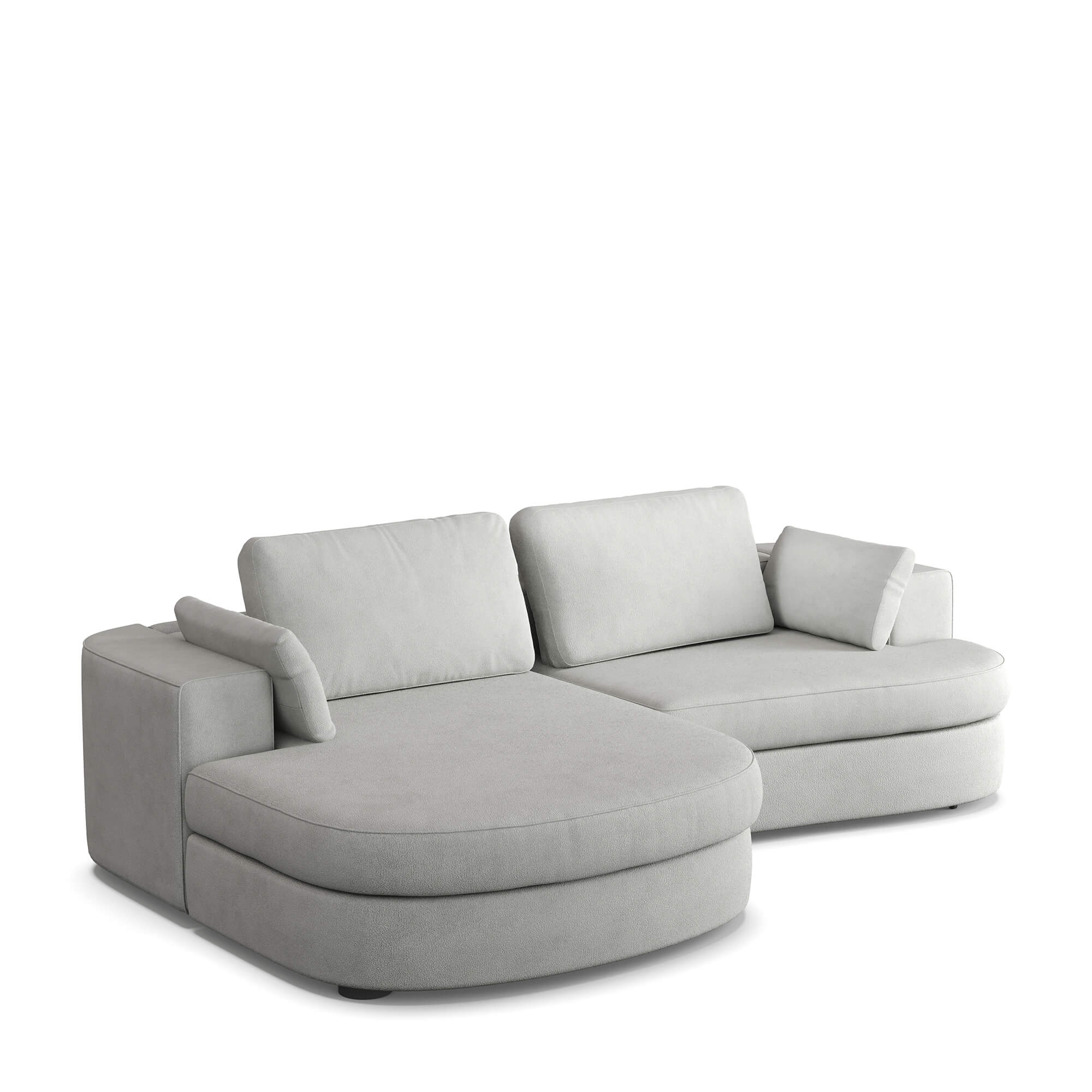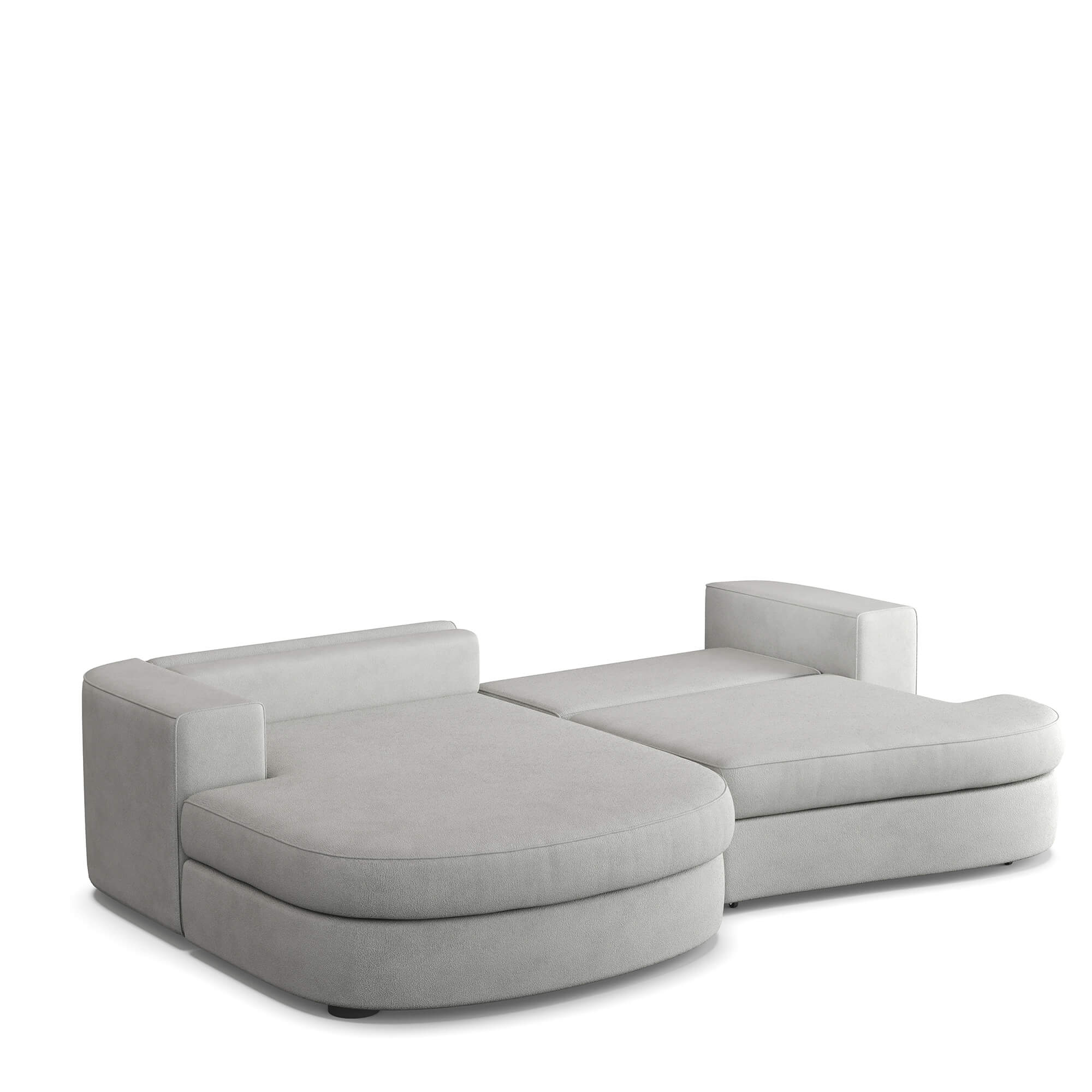 Удобный диван с низкой глубокой посадкой оснащен левой оттоманкой. В качестве материала обивки в нем используется нежный микровелюр (несколько оттенков на выбор). Диван оснащен механизмом «Еврокнижка». Его сиденье приподнимается вверх и выкатывается вперед, после чего можно сложить спинку дивана и получить широкое спальное место с небольшим стыком между двумя частями по центру. Способ раскладывания исключает повреждение напольного покрытия даже при ежедневной трансформации дивана. Модель можно использовать для ежедневного сна.