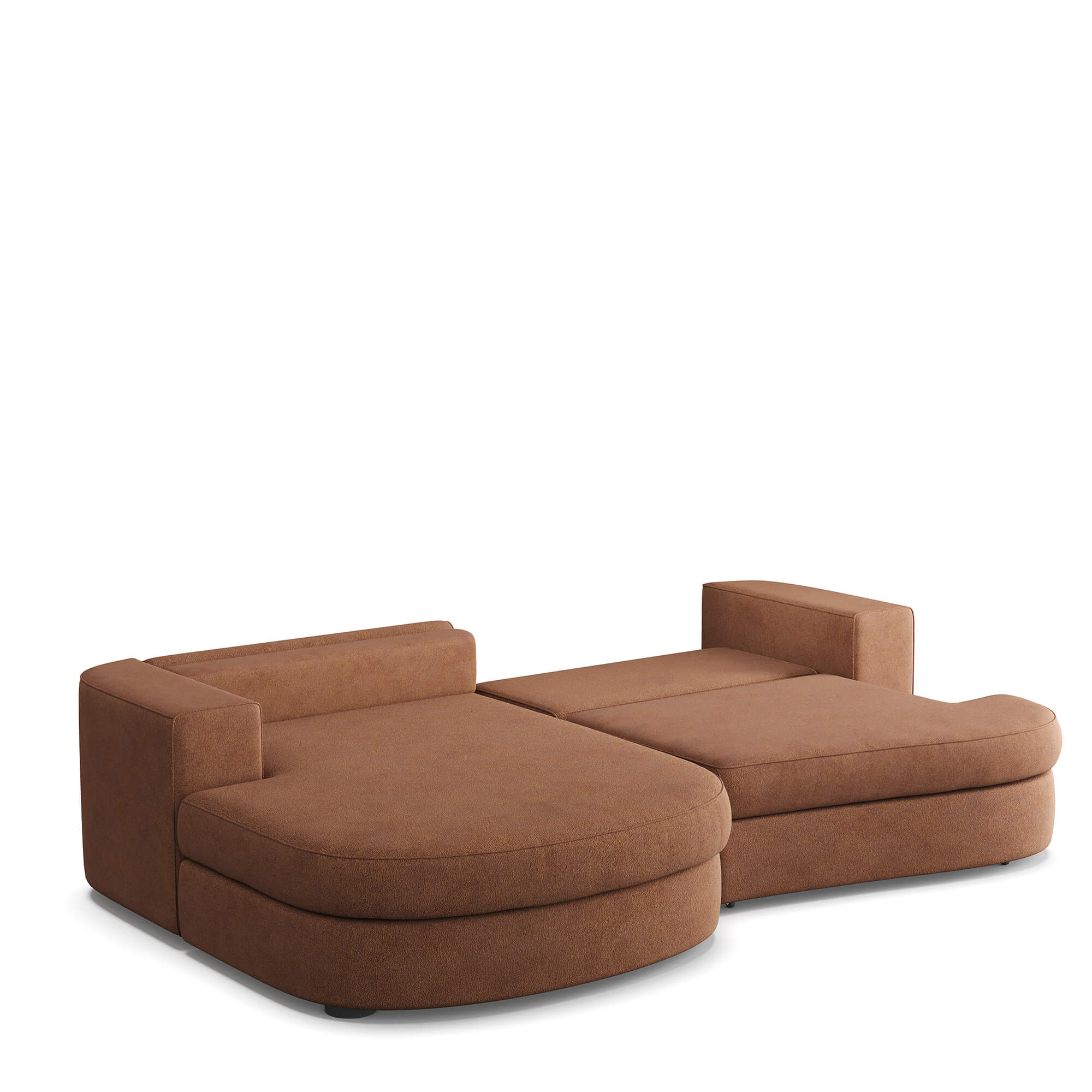 Удобный диван с низкой глубокой посадкой оснащен левой оттоманкой. В качестве материала обивки в нем используется нежный микровелюр (несколько оттенков на выбор). Диван оснащен механизмом «Еврокнижка». Его сиденье приподнимается вверх и выкатывается вперед, после чего можно сложить спинку дивана и получить широкое спальное место с небольшим стыком между двумя частями по центру. Способ раскладывания исключает повреждение напольного покрытия даже при ежедневной трансформации дивана. Модель можно использовать для ежедневного сна.