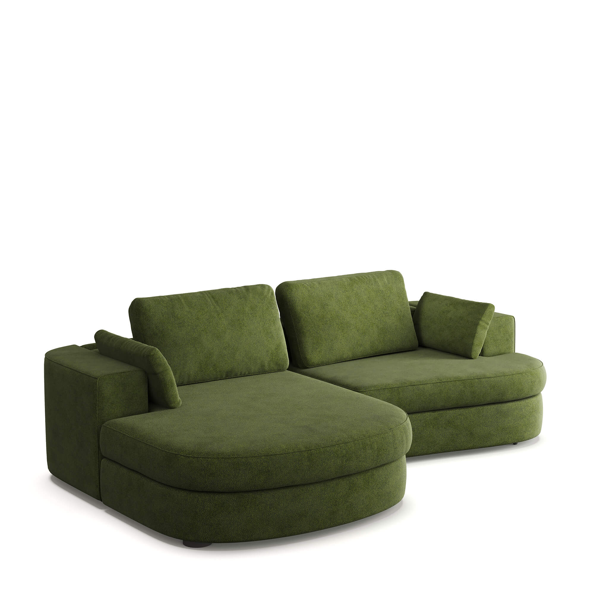 Удобный диван с низкой глубокой посадкой оснащен левой оттоманкой. В качестве материала обивки в нем используется нежный микровелюр (несколько оттенков на выбор). Диван оснащен механизмом «Еврокнижка». Его сиденье приподнимается вверх и выкатывается вперед, после чего можно сложить спинку дивана и получить широкое спальное место с небольшим стыком между двумя частями по центру. Способ раскладывания исключает повреждение напольного покрытия даже при ежедневной трансформации дивана. Модель можно использовать для ежедневного сна.