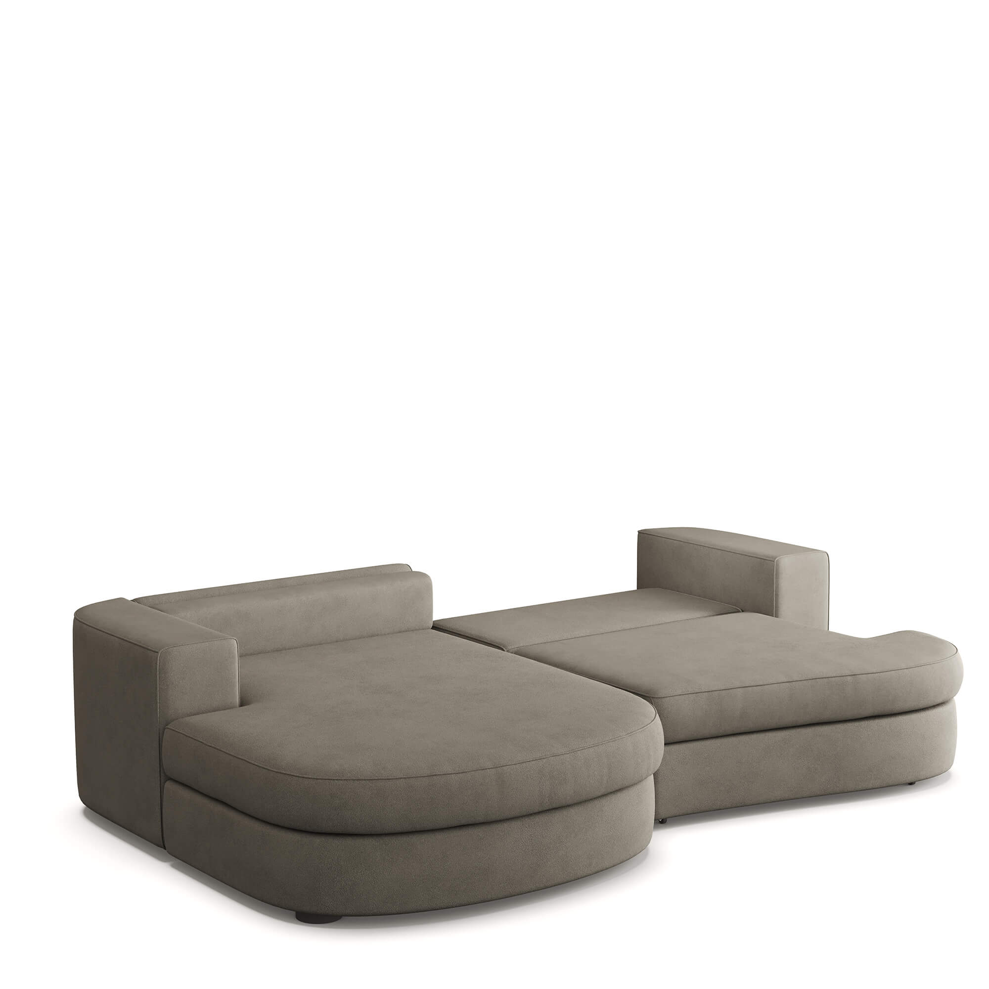 Удобный диван с низкой глубокой посадкой оснащен левой оттоманкой. В качестве материала обивки в нем используется нежный микровелюр (несколько оттенков на выбор). Диван оснащен механизмом «Еврокнижка». Его сиденье приподнимается вверх и выкатывается вперед, после чего можно сложить спинку дивана и получить широкое спальное место с небольшим стыком между двумя частями по центру. Способ раскладывания исключает повреждение напольного покрытия даже при ежедневной трансформации дивана. Модель можно использовать для ежедневного сна.