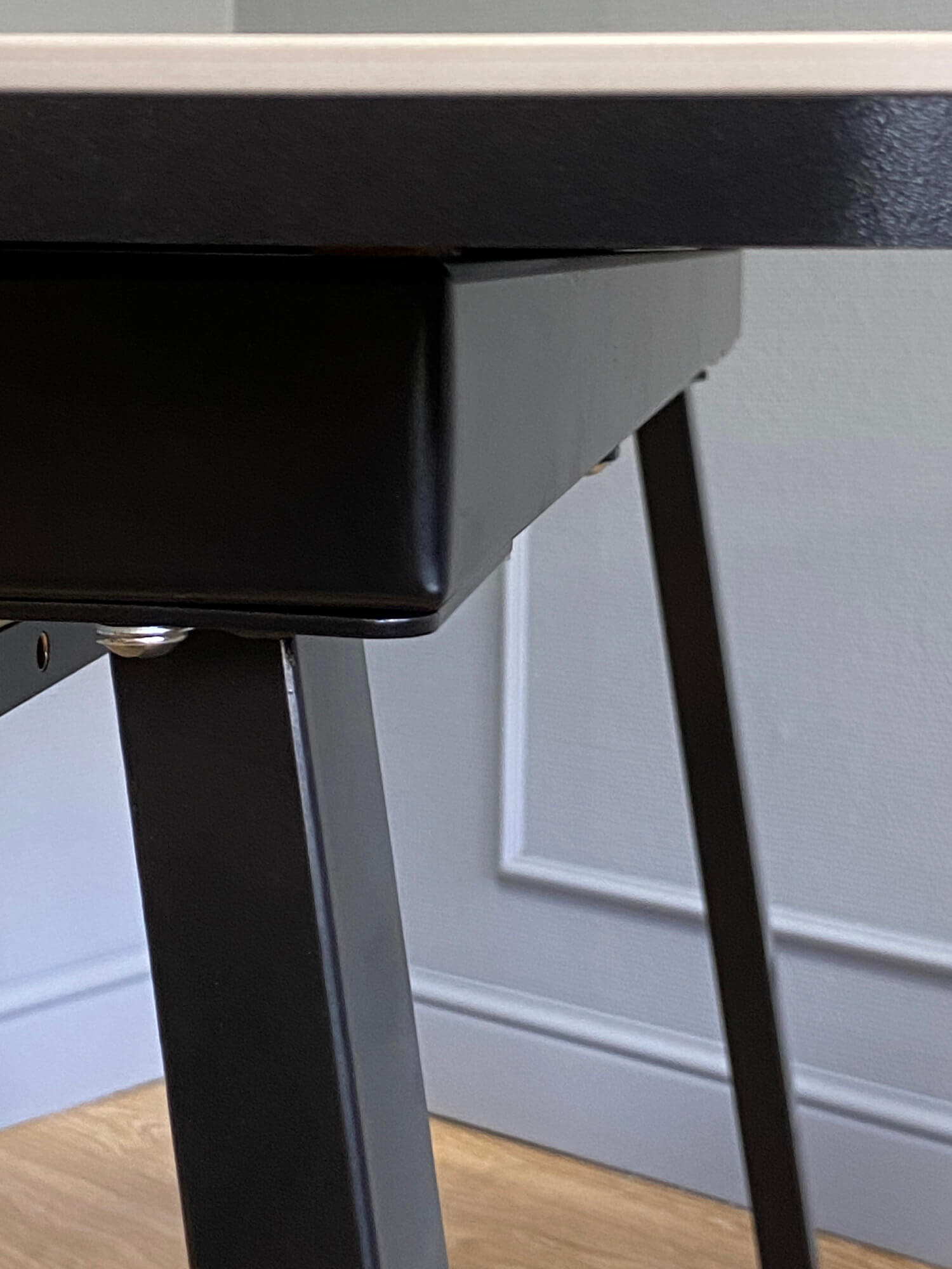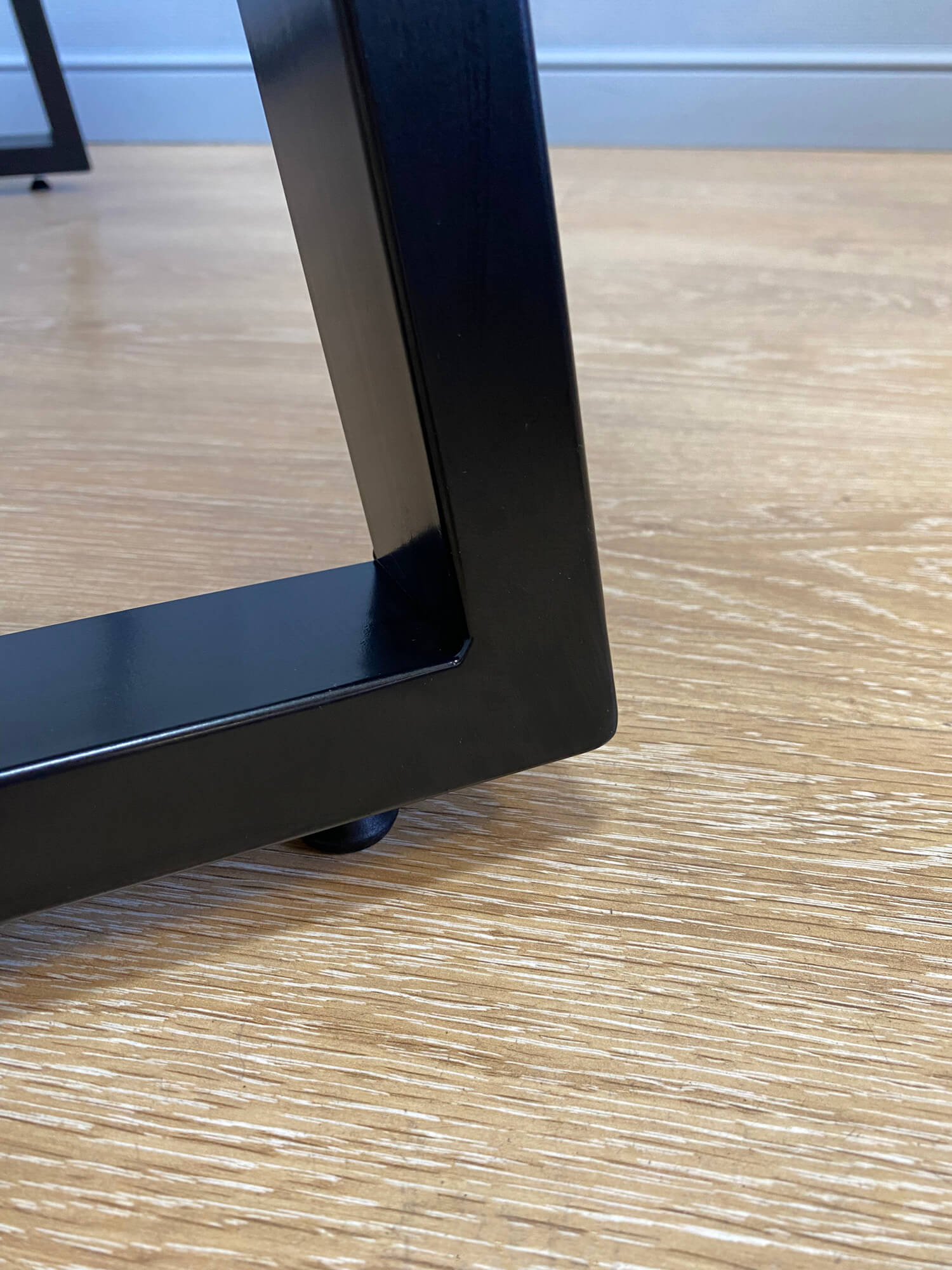 Синхронный механизм обеспечивает простое и удобное раскладывание (достаточно потянуть за один край столешницы, чтобы сместился и второй). Тонкие, но прочные П-образные опоры оставляют достаточно места для ног.