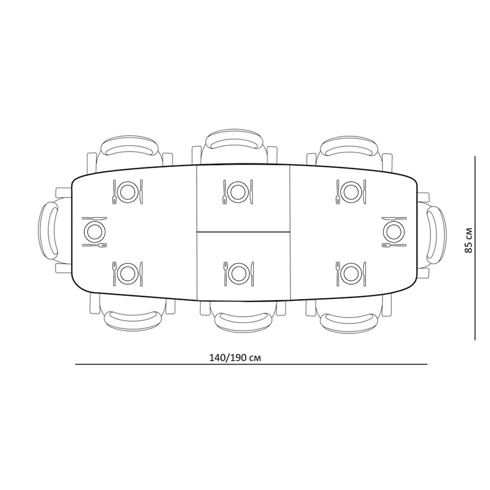 Надежный механизм со вставкой «бабочка» увеличивает стол на 45 см, что позволяет разместить до 8 человек.