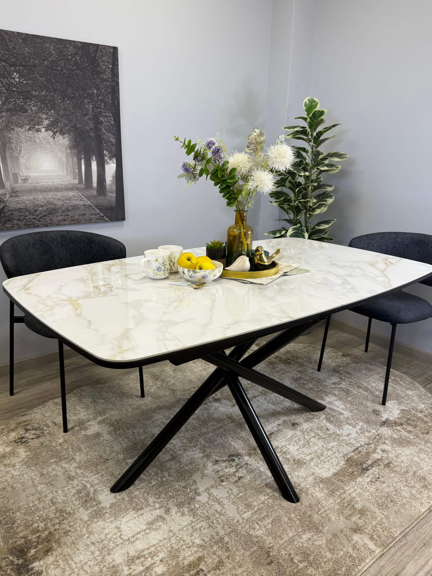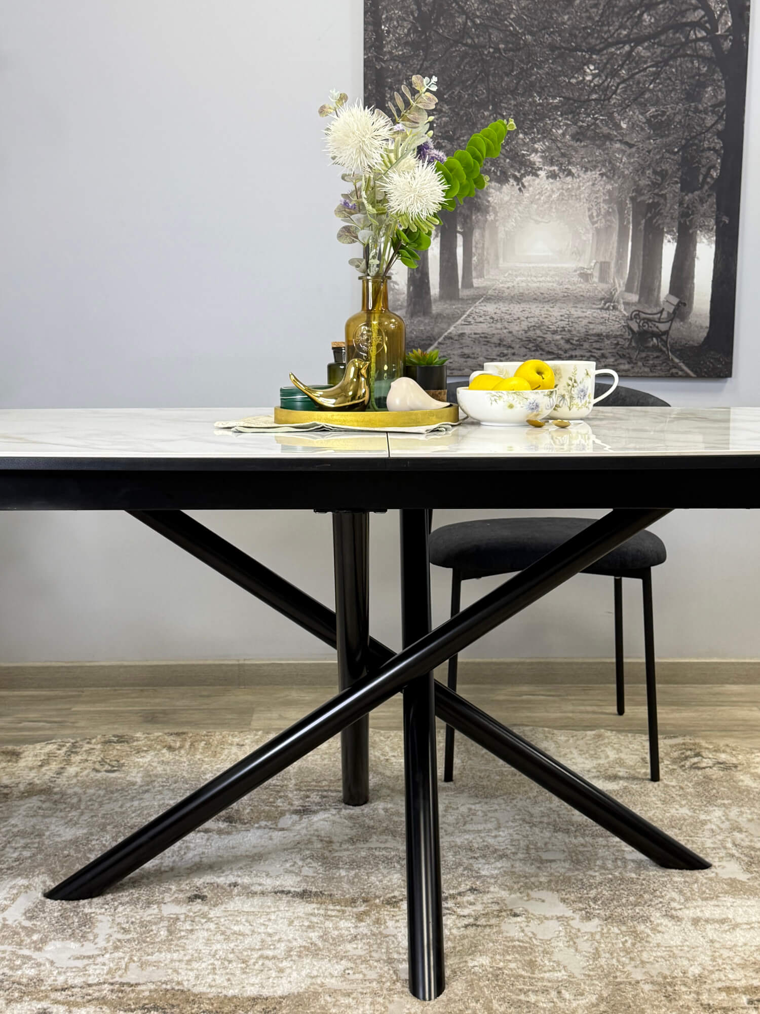 Стол обеденный Kenner DF1550 Черный / Мрамор серый глянец
