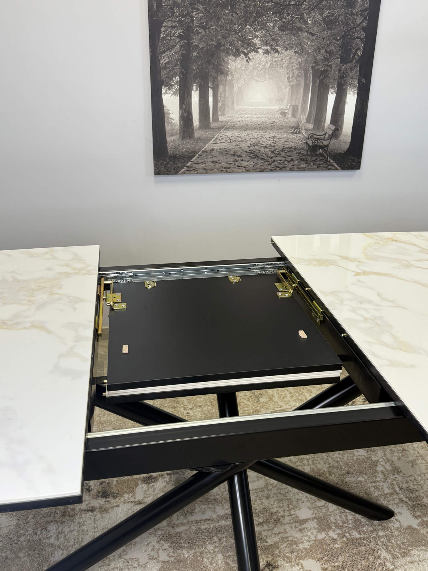 Еще -5% Стол обеденный Kenner DK1200 Черный / Мрамор золотой