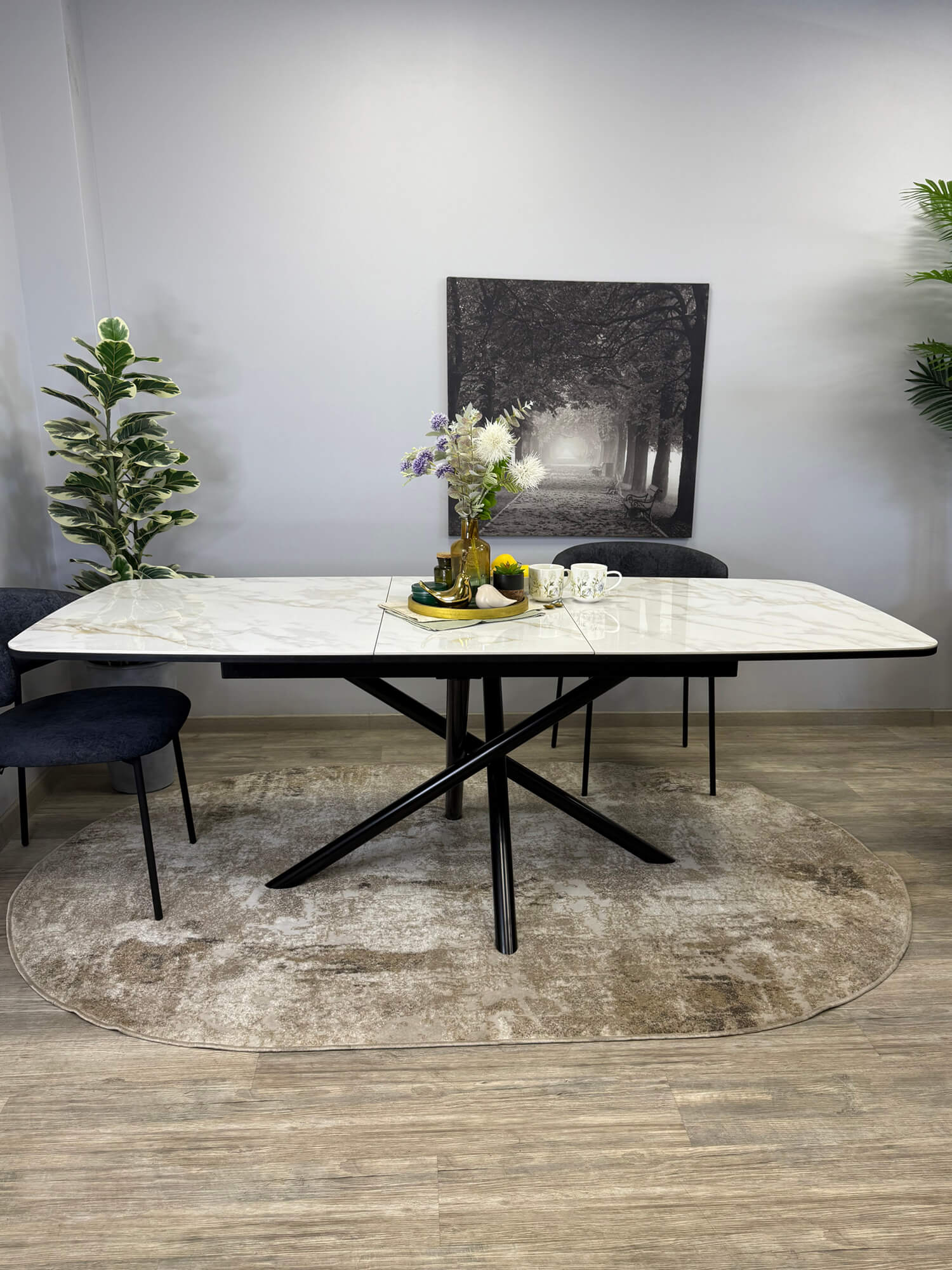 Еще -5% Стол обеденный Kenner DC1300 Черный / Мрамор черный