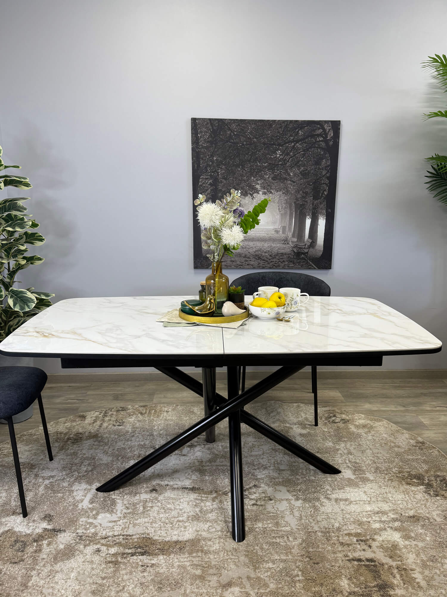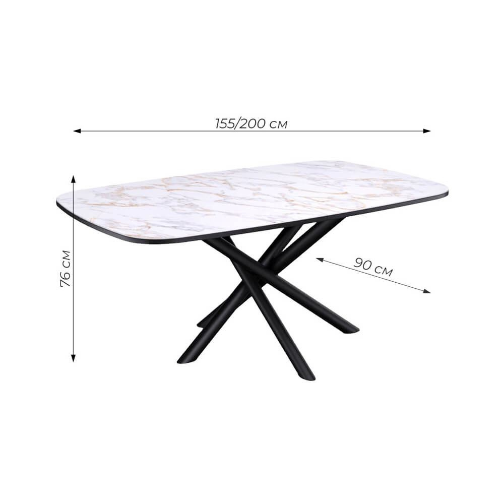 Стол обеденный Kenner DF1550 Черный / Мрамор белый глянец