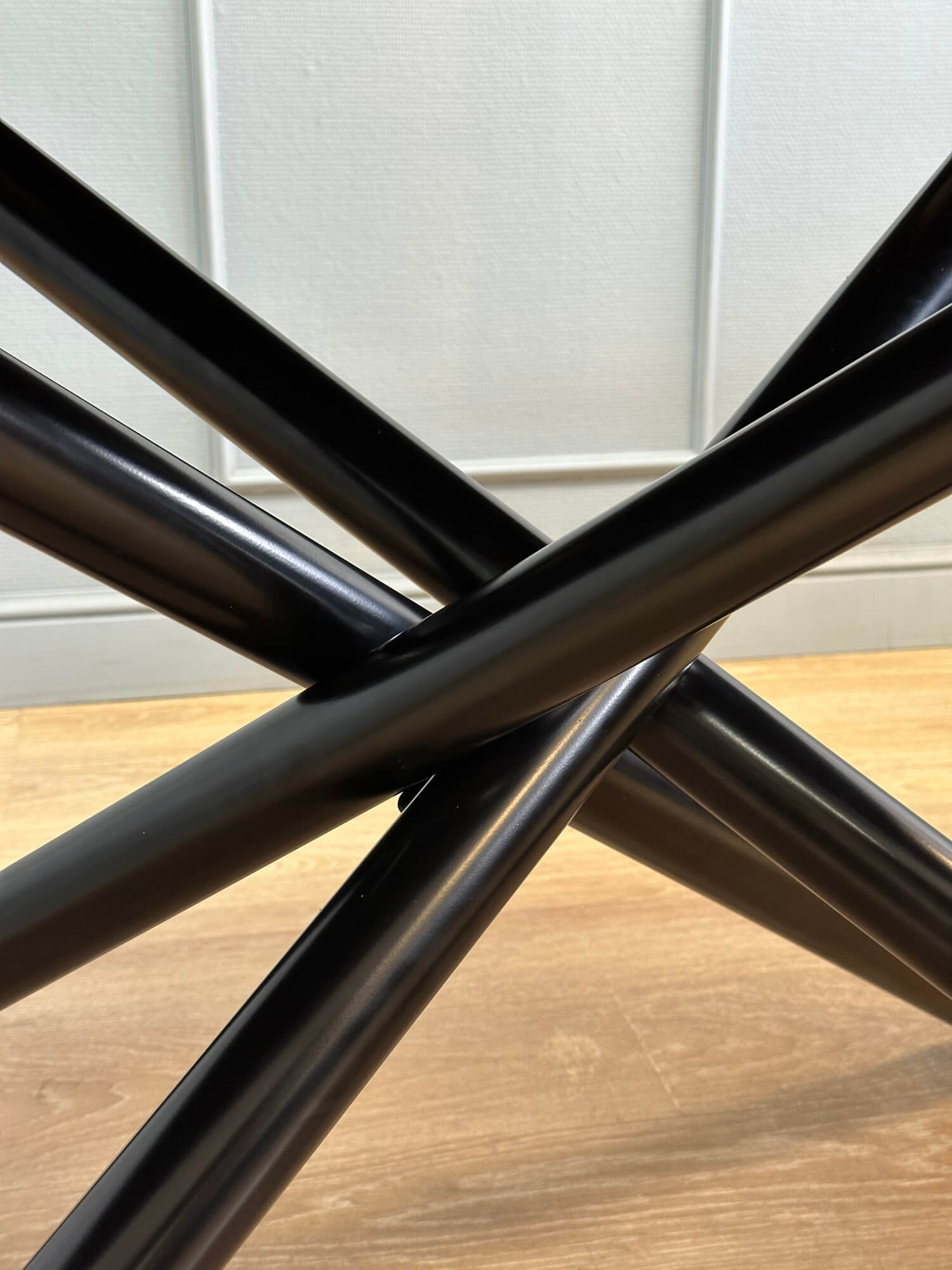 Сочетание характеристик делает модель одним из лучших вариантов для большинства интерьерных задач. Размер стола оптимален для 4 человек. Столешница с безопасными скругленными углами изготовлена из керамики, что является редкостью для стола небольших габаритов. Центральная опора позволяет сесть с любой стороны, не мешает при использовании кухонного уголка или диванчика, оставляет максимальное пространство для ног.