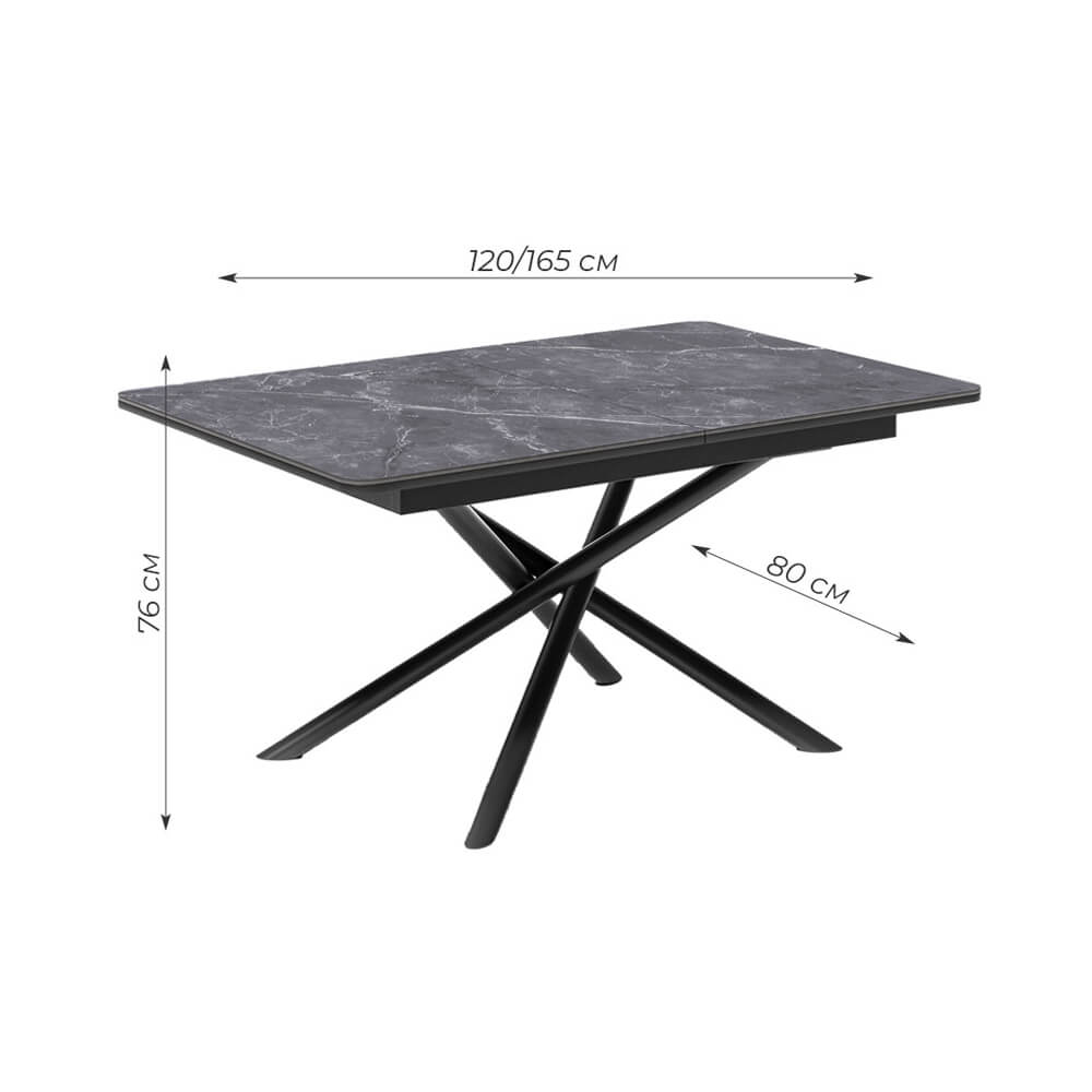 Стол обеденный Kenner DF1250 Черный / Мрамор серый глянец
