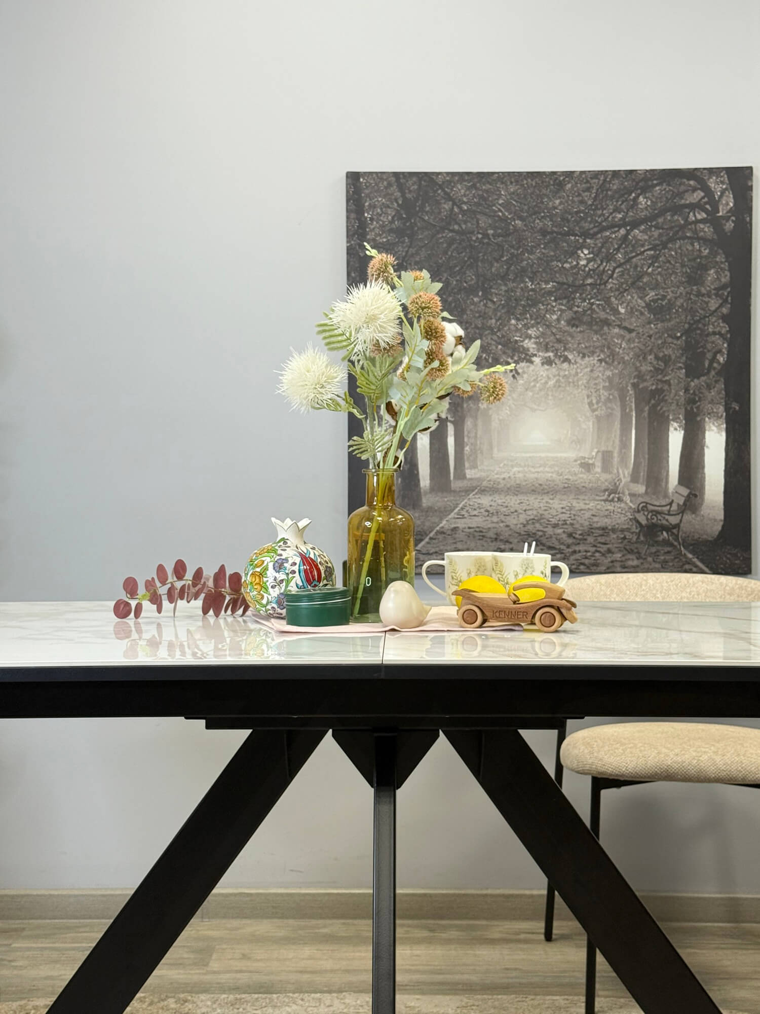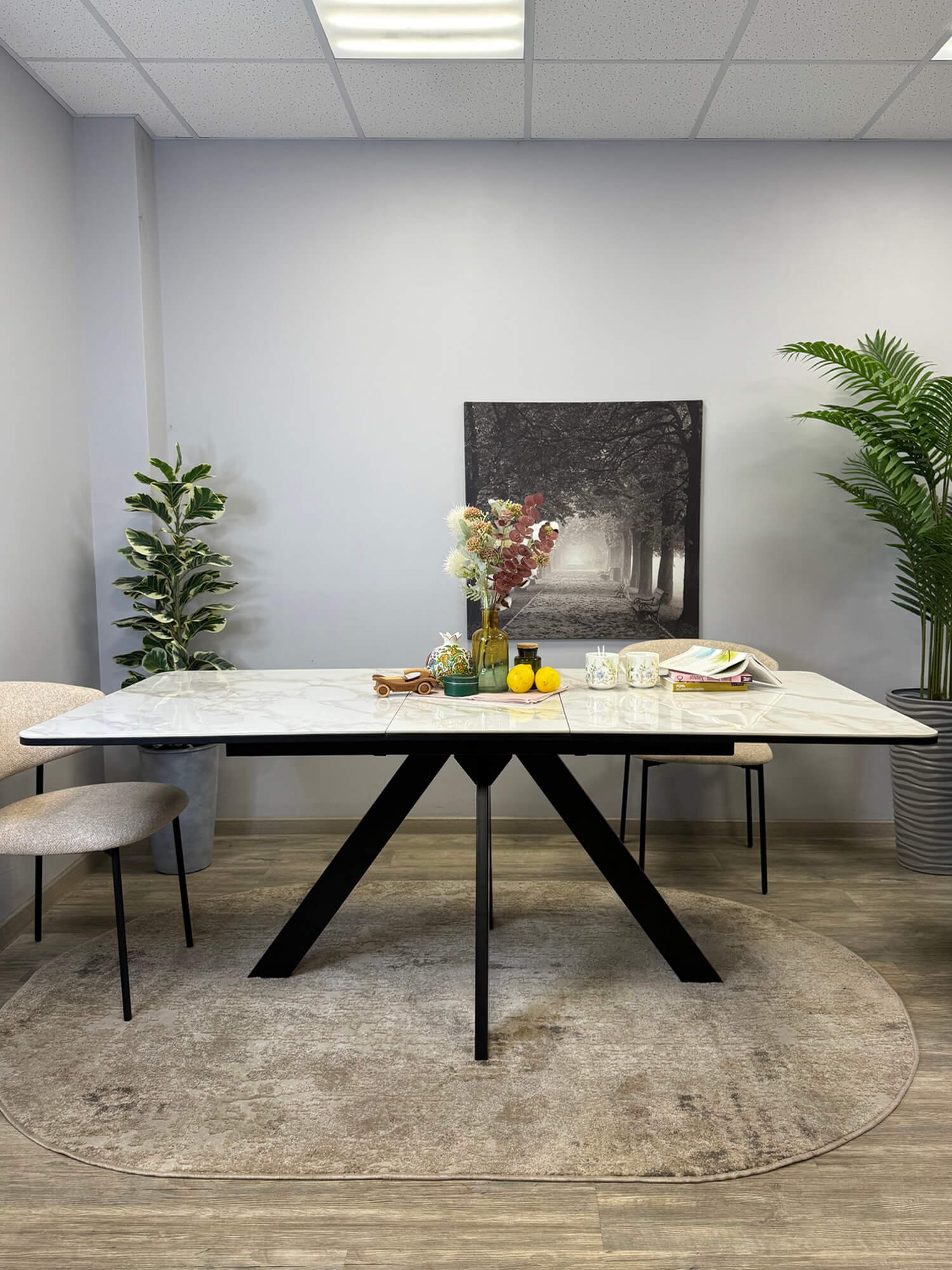 Еще -5% Стол обеденный Kenner DL1300 Черный / Мрамор белый глянец