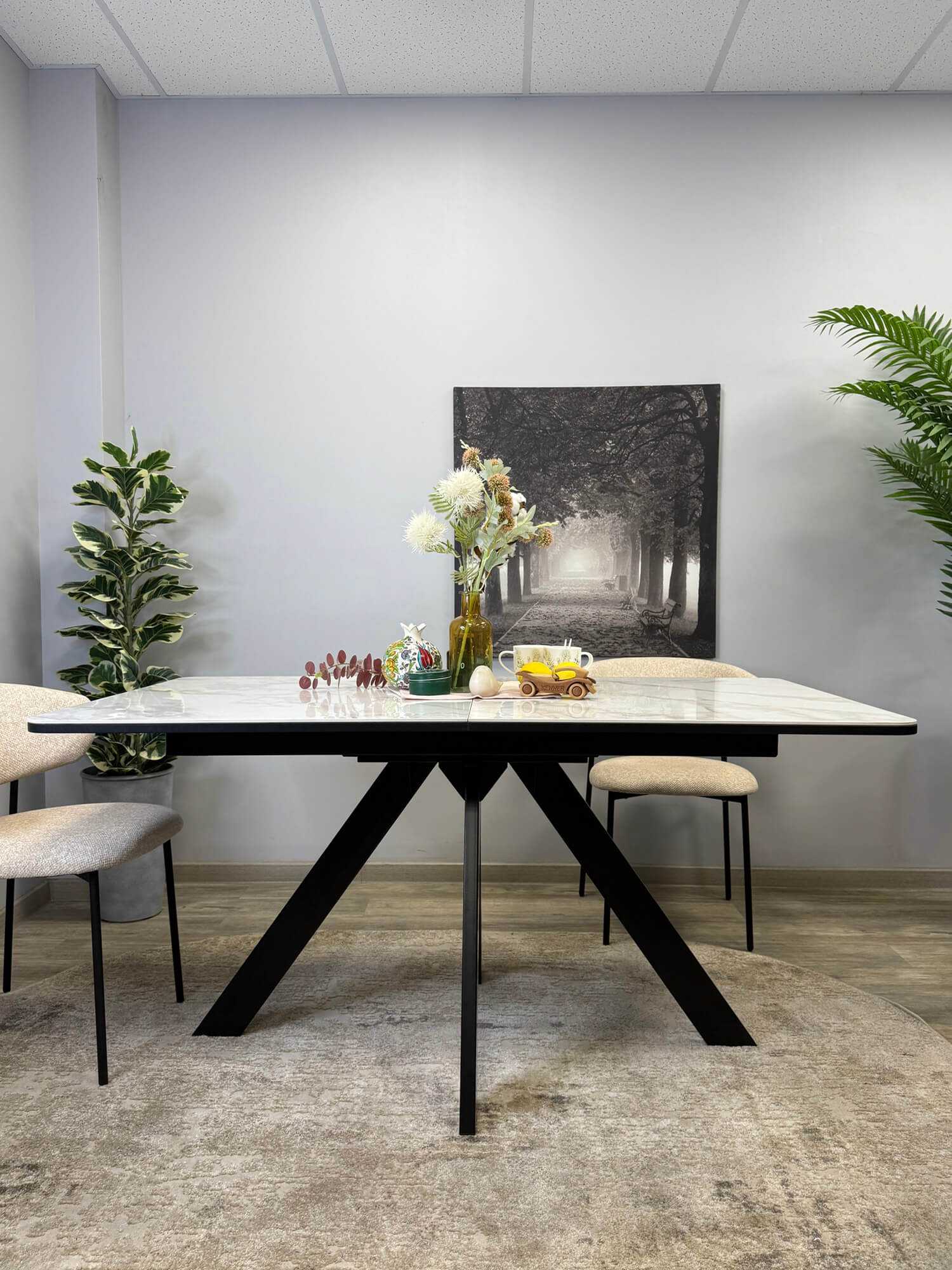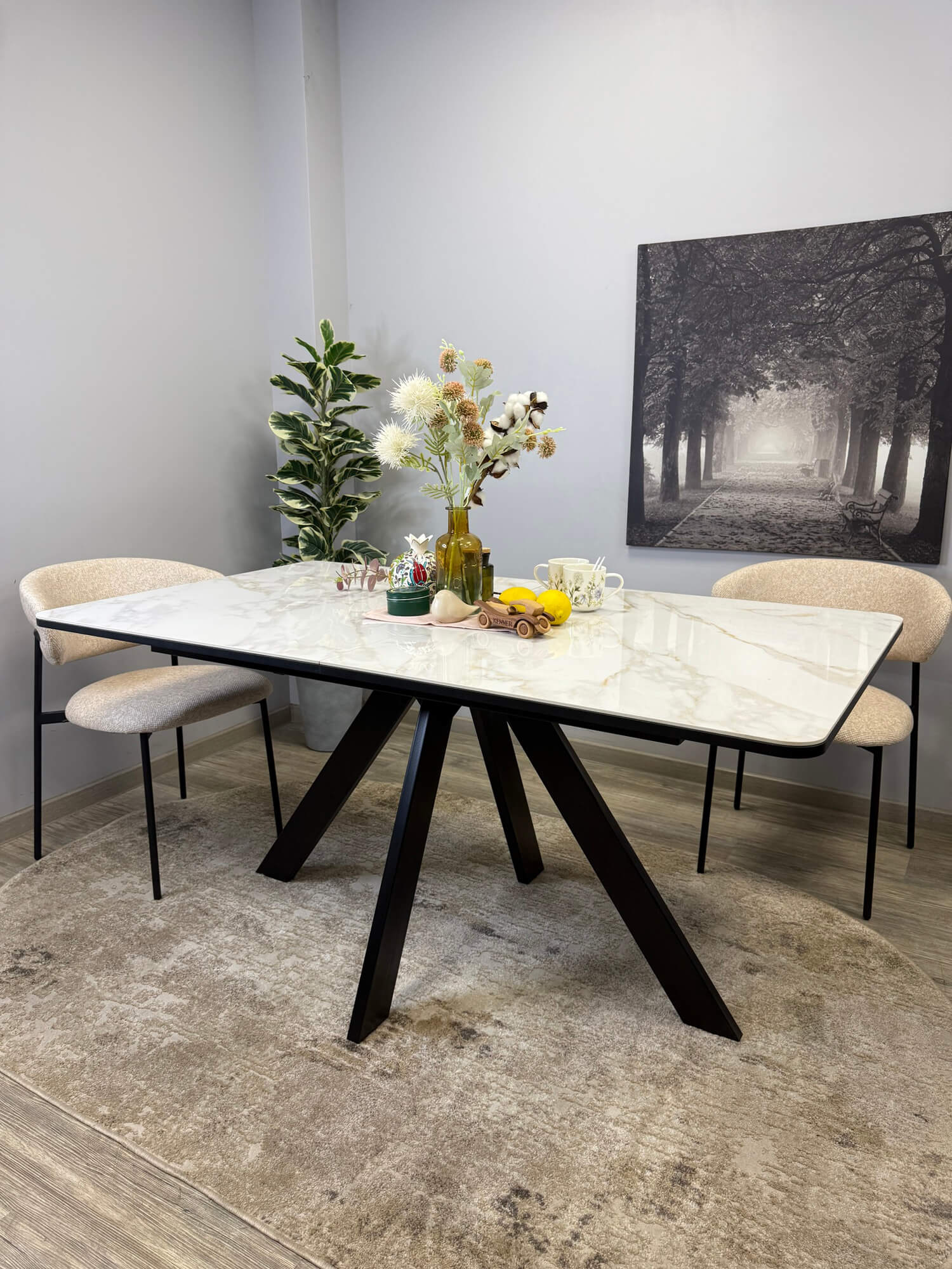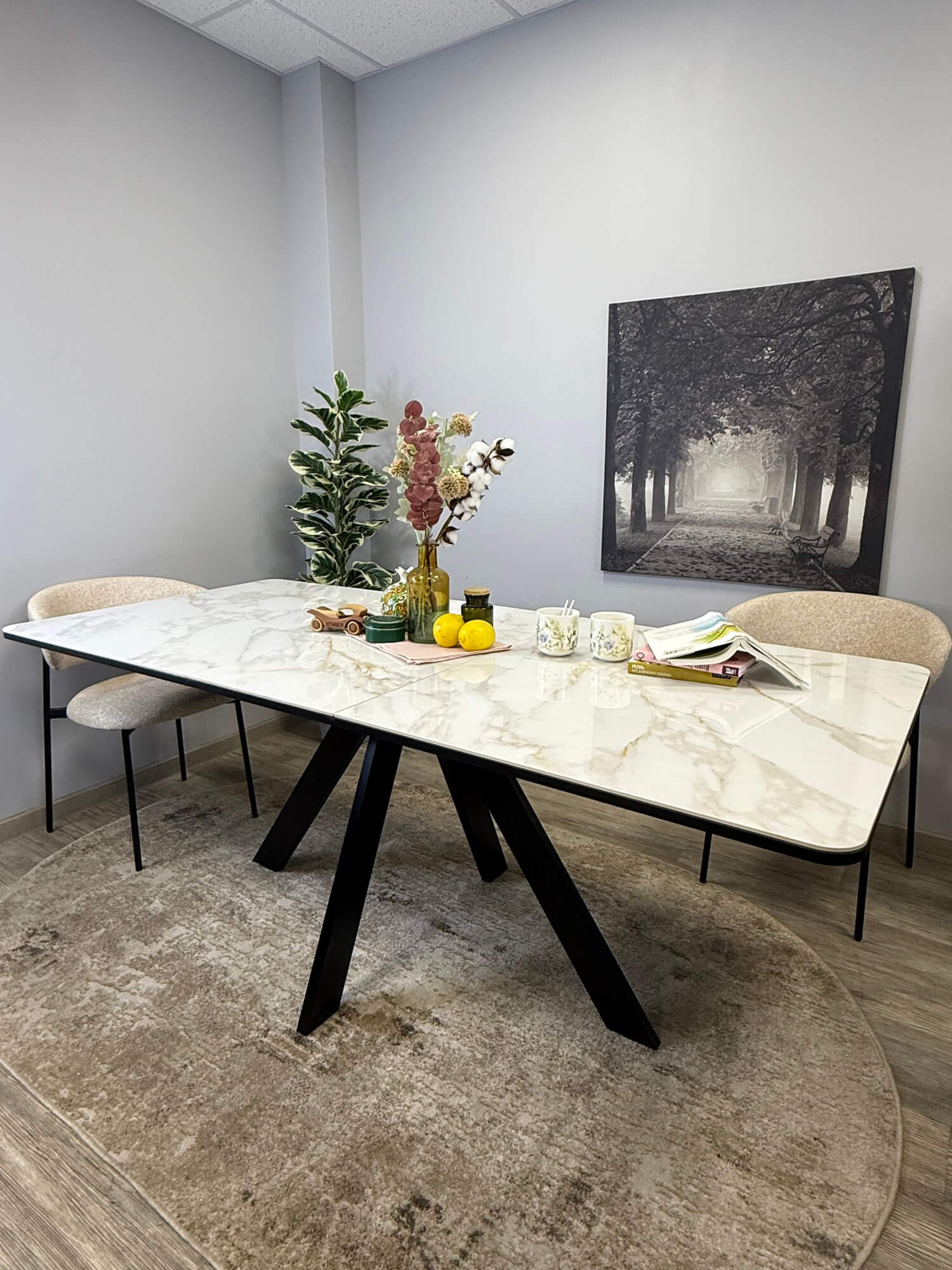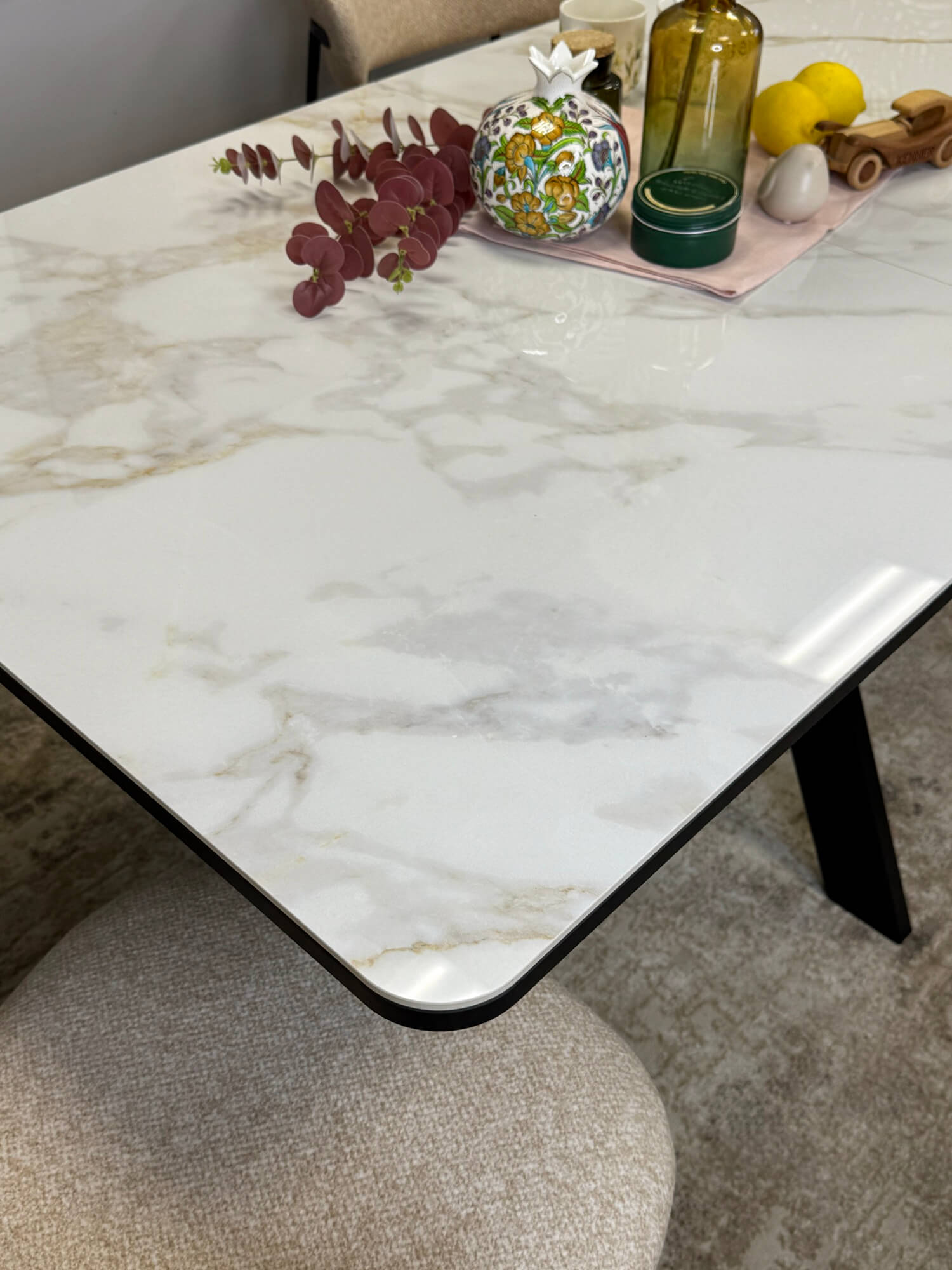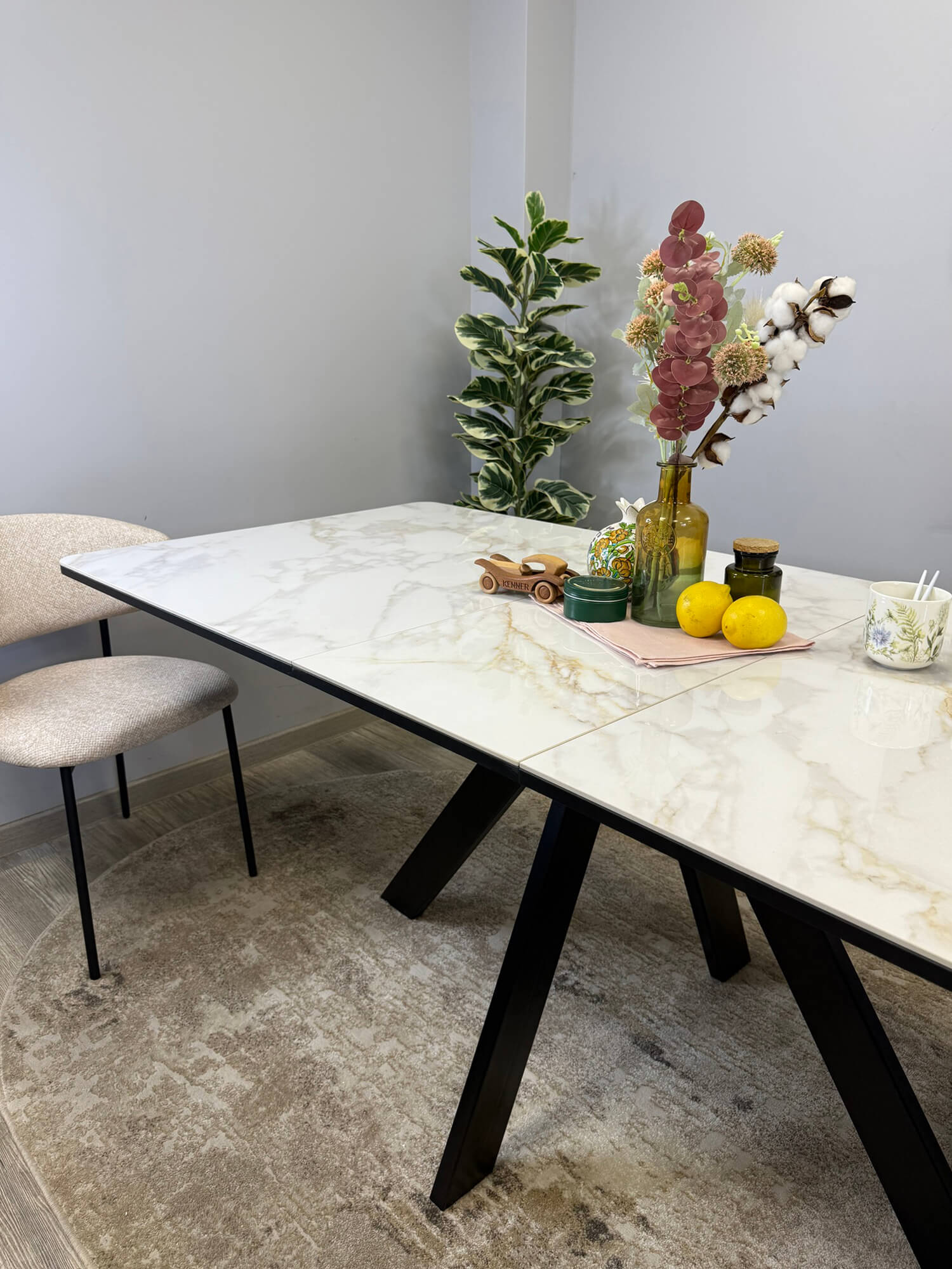 Стол обеденный Kenner DL1300 Черный / Мрамор белый глянец