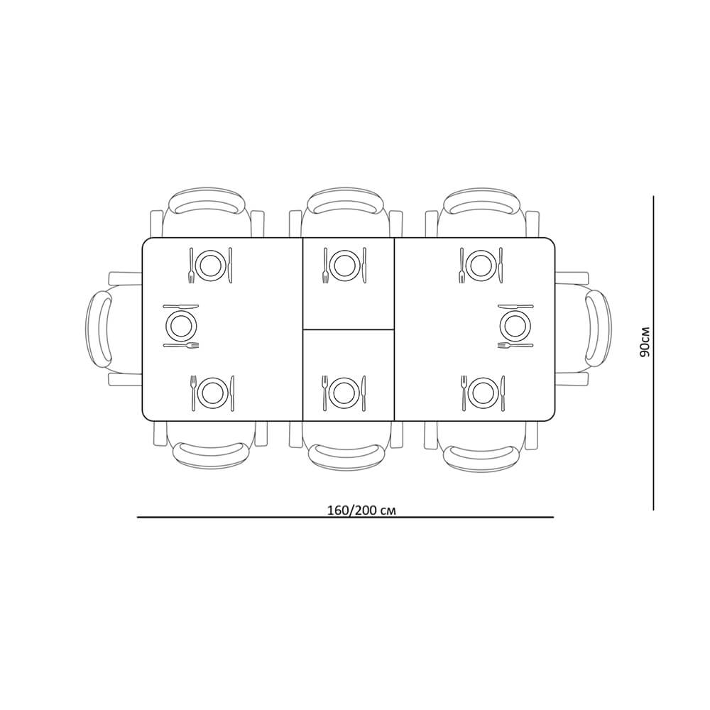Просторный стол на устойчивой центральной опоре оставляет достаточно пространства для комфортного размещения ног, что особенно актуально для людей большого роста. Благодаря раздвижной конструкции длина стола может достигать 2 метров, предоставляя возможность расположить до 10 человек.