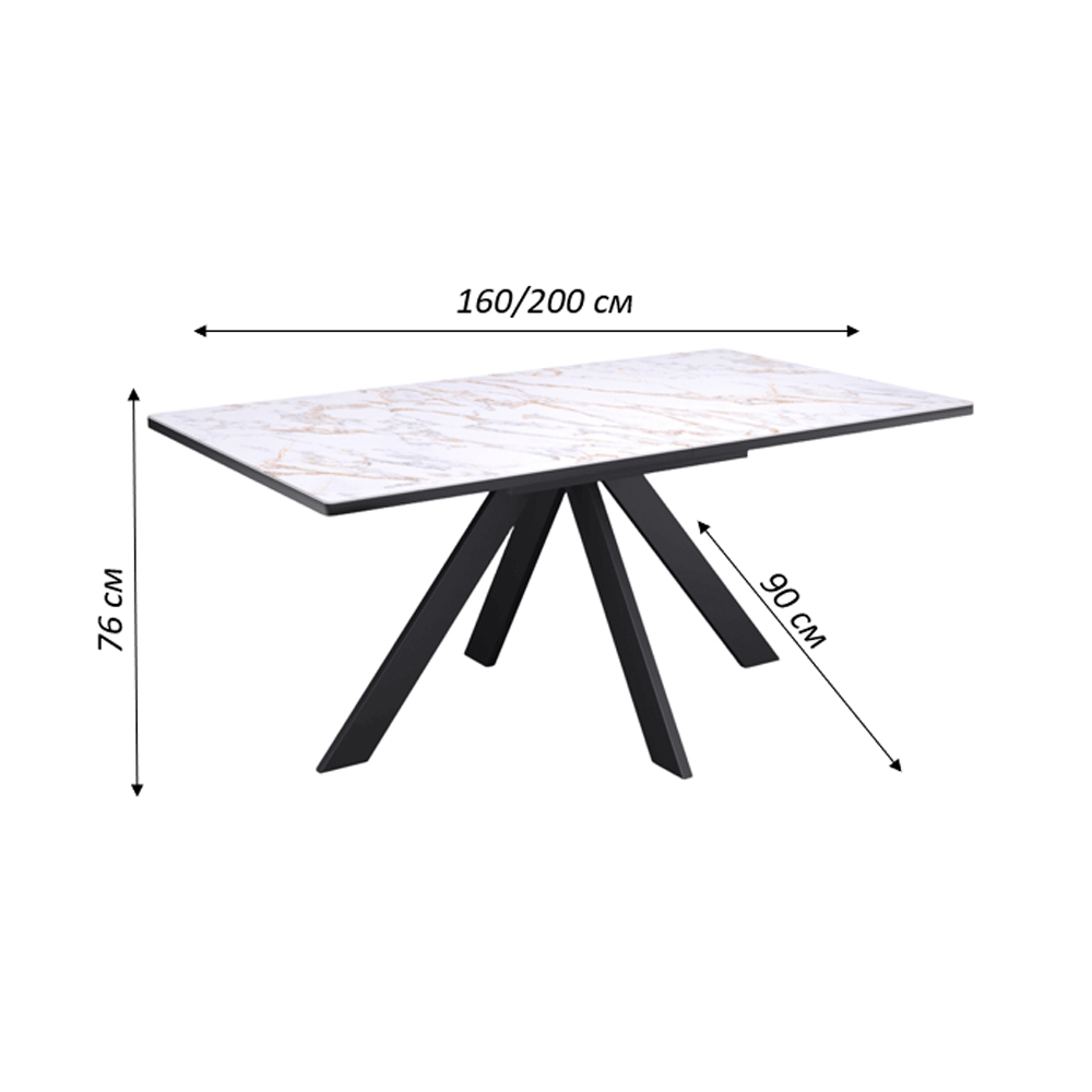 Стол обеденный Kenner DL1600 Черный / Мрамор белый глянец