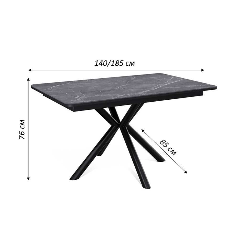 Стол обеденный Kenner DF1250 Черный / Мрамор серый глянец