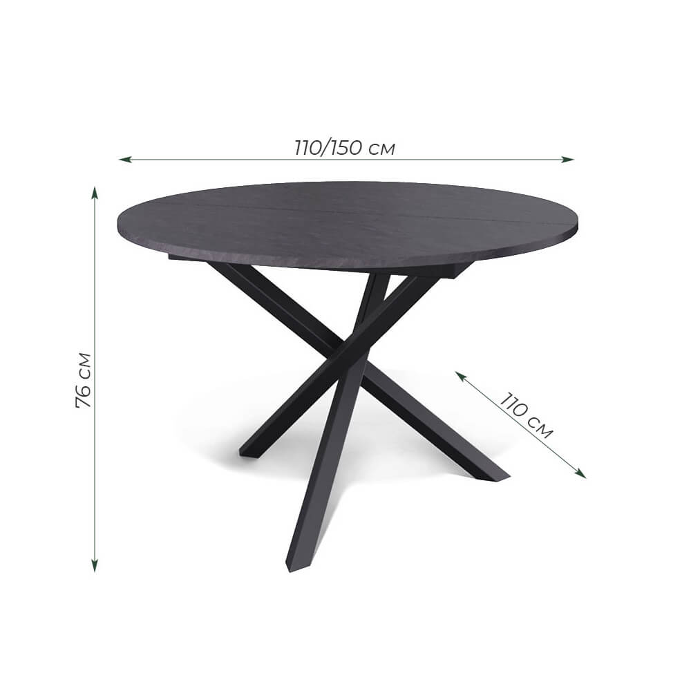 Стол обеденный Kenner DR1100 Черный / Сланец черный