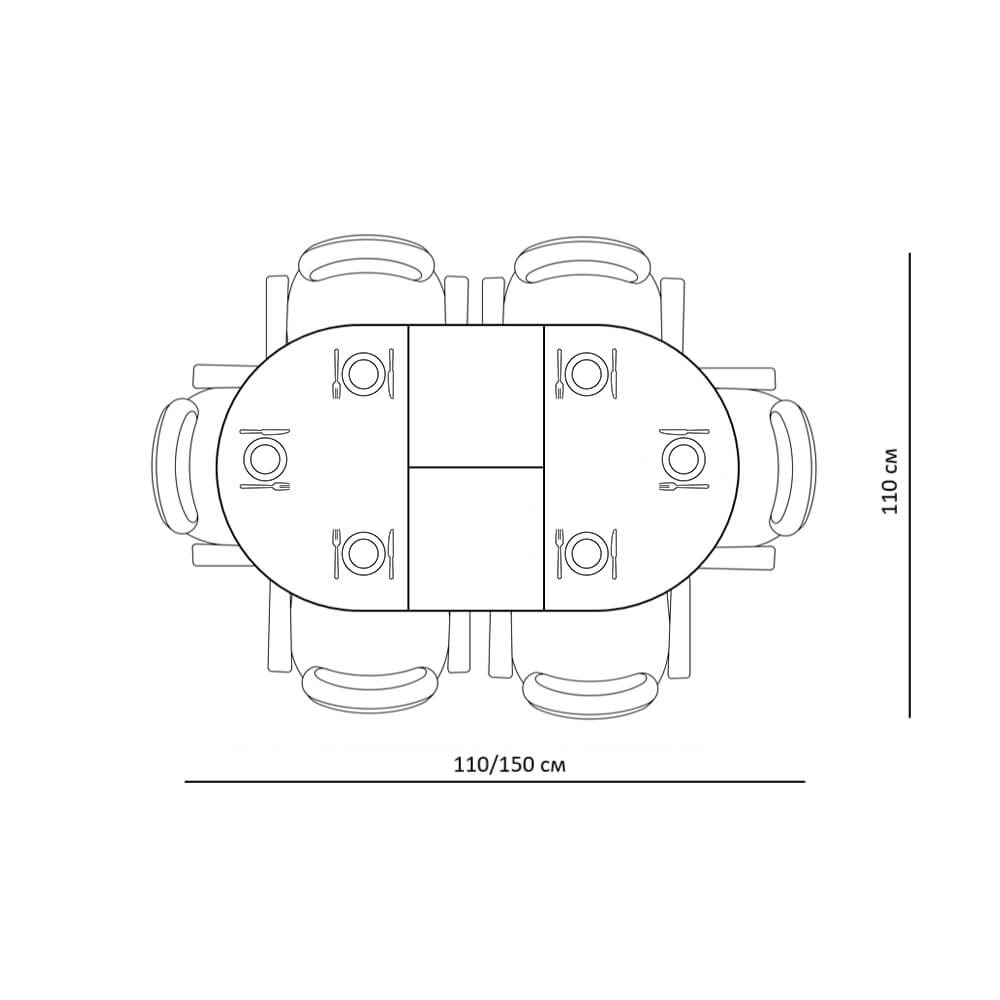 Столешница модели в точности воспроизводит рисунок и рельеф натурального материала благодаря применению ЛДСП Egger Premium и технологии синхропора. Оптимальный размер подходит для семьи из 5-6 человек, а скругленные углы столешницы делают использование модели удобным и безопасным.