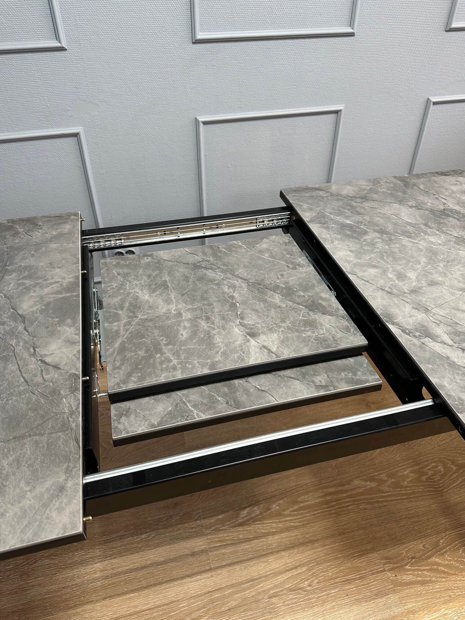 Еще -5% Стол обеденный Kenner KR1400 Черный / Мрамор серый глянец