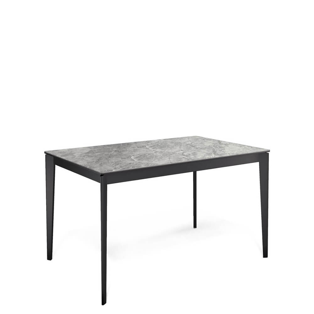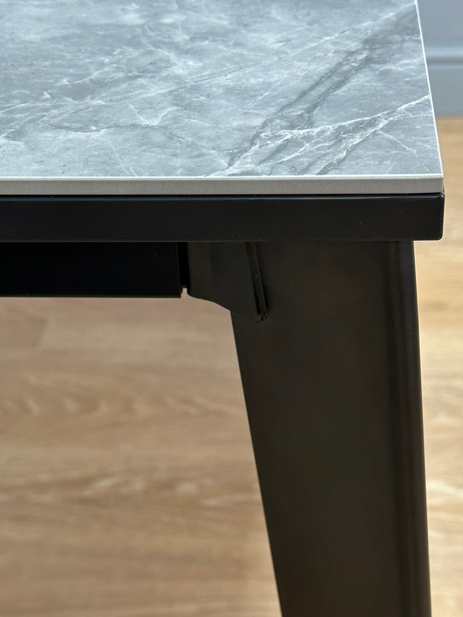 Стол с керамической столешницей и габаритными размерами 120х80 см оптимален для кухни площадью до 13 кв.м. Синхронный механизм раздвижения увеличивает модель ещё на 45 см. Тонкие и прочные дизайнерские опоры позволяют поставить два больших стула по широкой стороне и придают модели устойчивость.