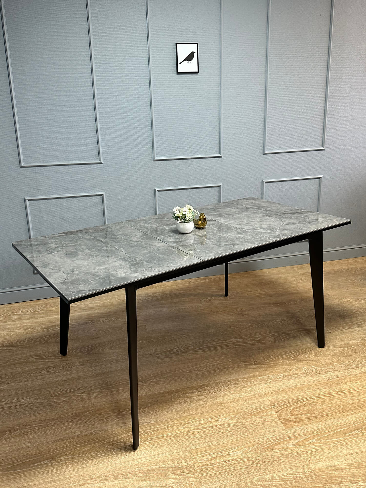 Стол обеденный Kenner KR1400 Черный / Мрамор серый глянец