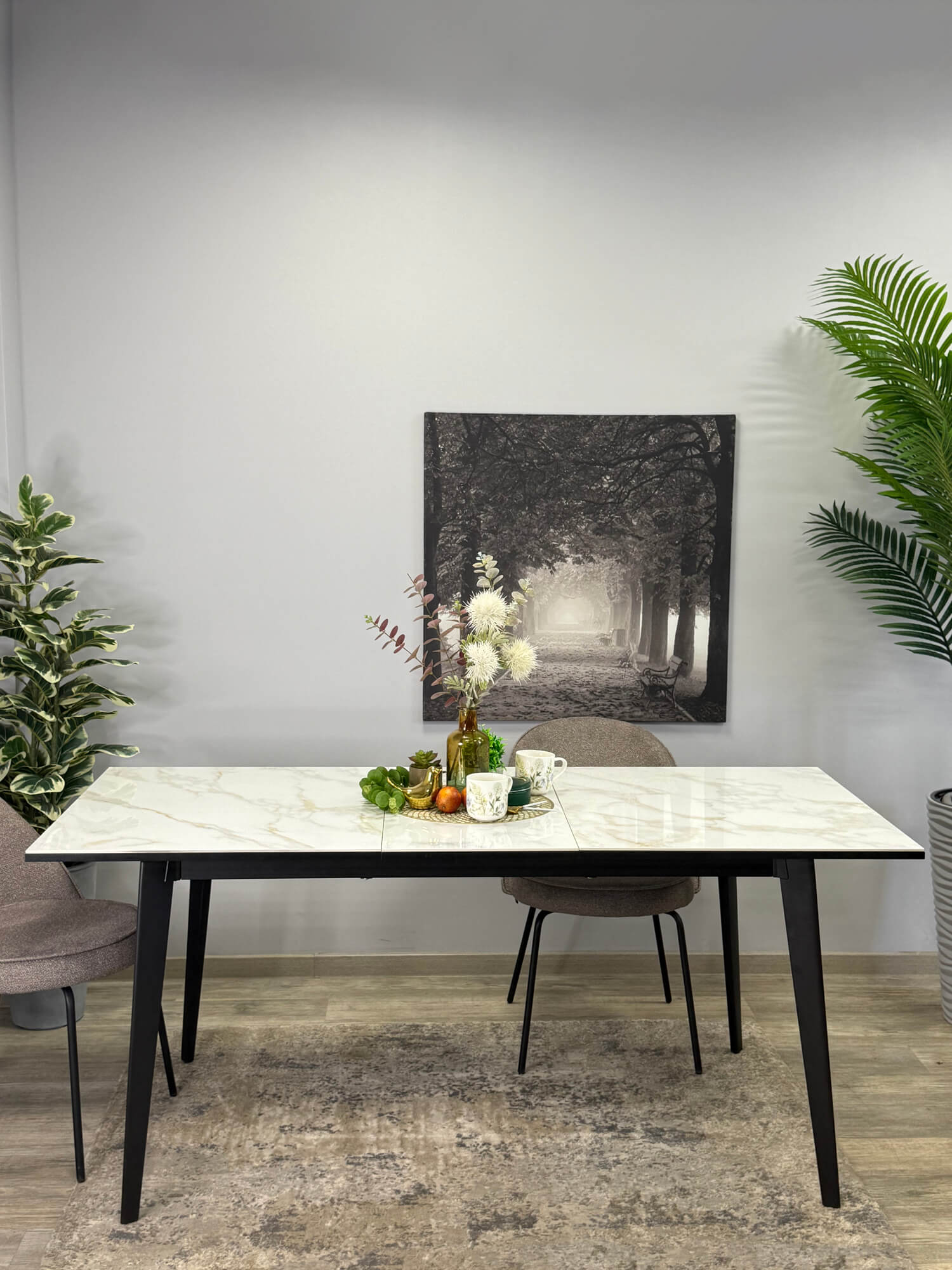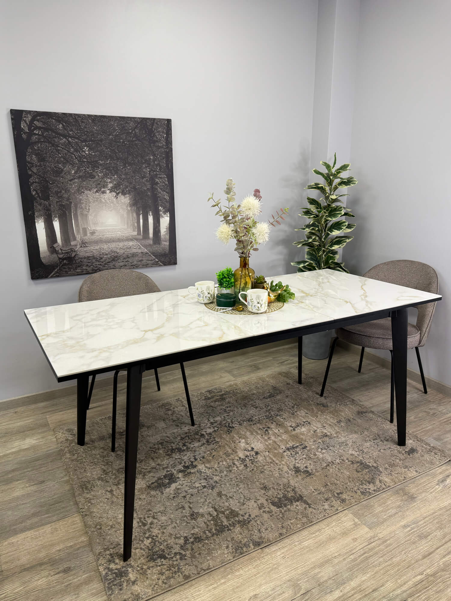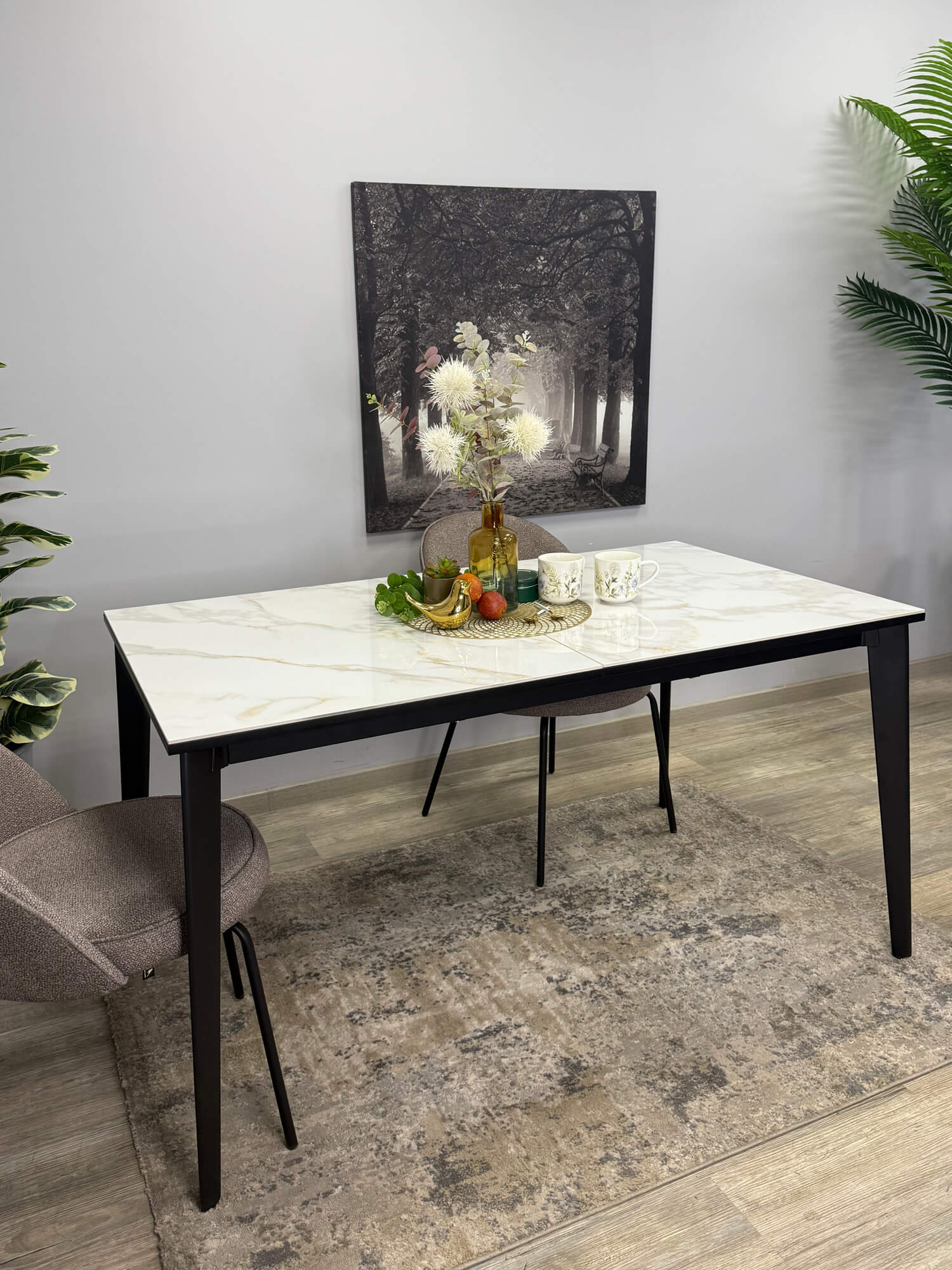 Еще -5% Стол обеденный Kenner KS1400 Черный / Мрамор золотой