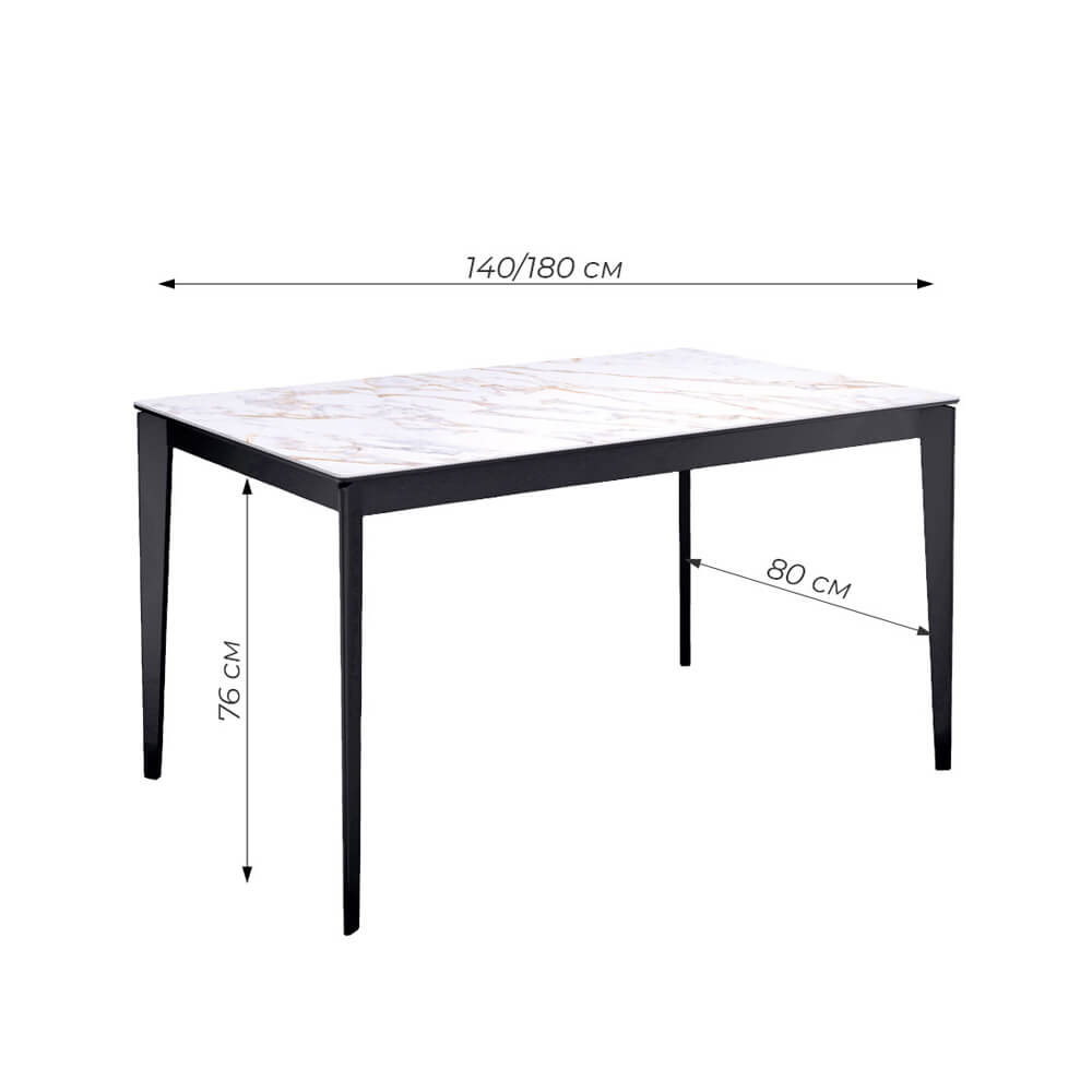 Стол обеденный Kenner KR1400 Черный / Мрамор белый глянец