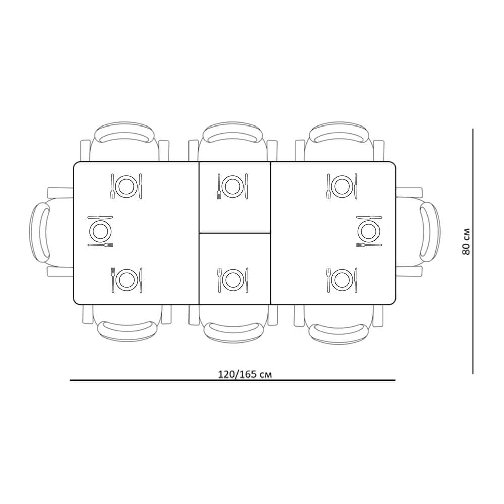 Оптимальный размер стола подходит для семьи из 5-6 человек, а скругленные углы столешницы делают использование модели удобным и безопасным. Размер 120х80 см оптимален для кухни площадью до 13 кв.м. Система раскладки увеличивает стол еще на 45 см благодаря синхронному механизму раздвижении.