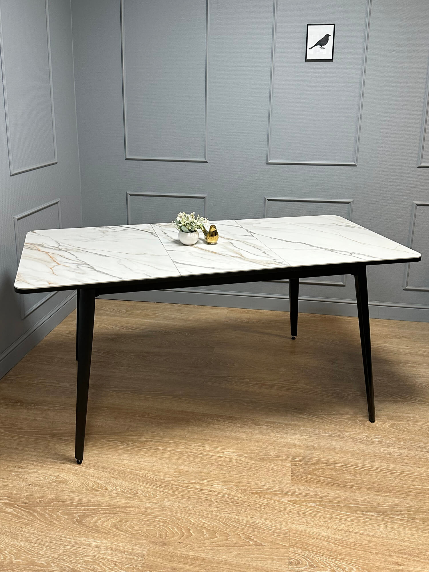 Стол обеденный Kenner KR1400 Черный / Мрамор белый глянец