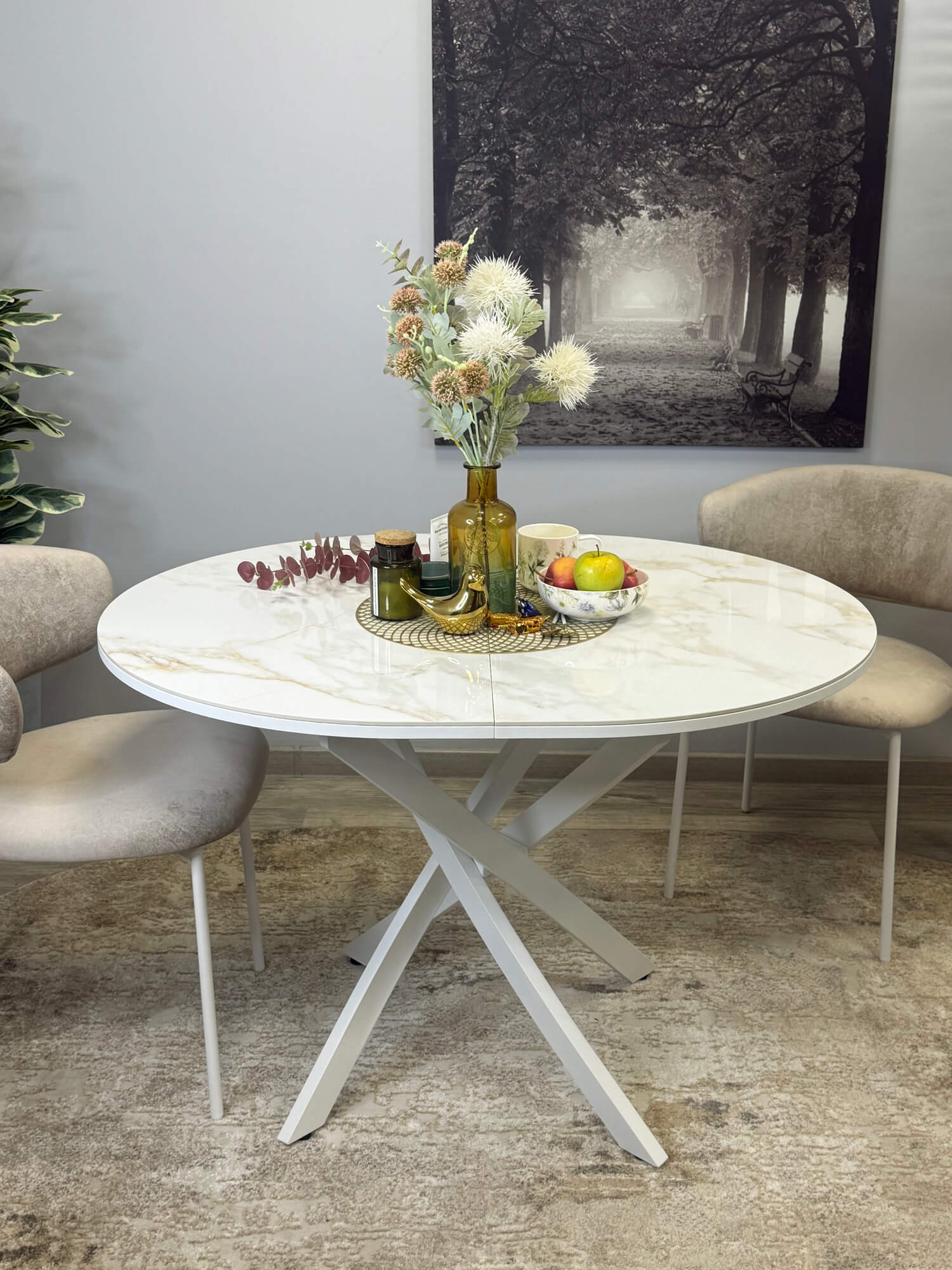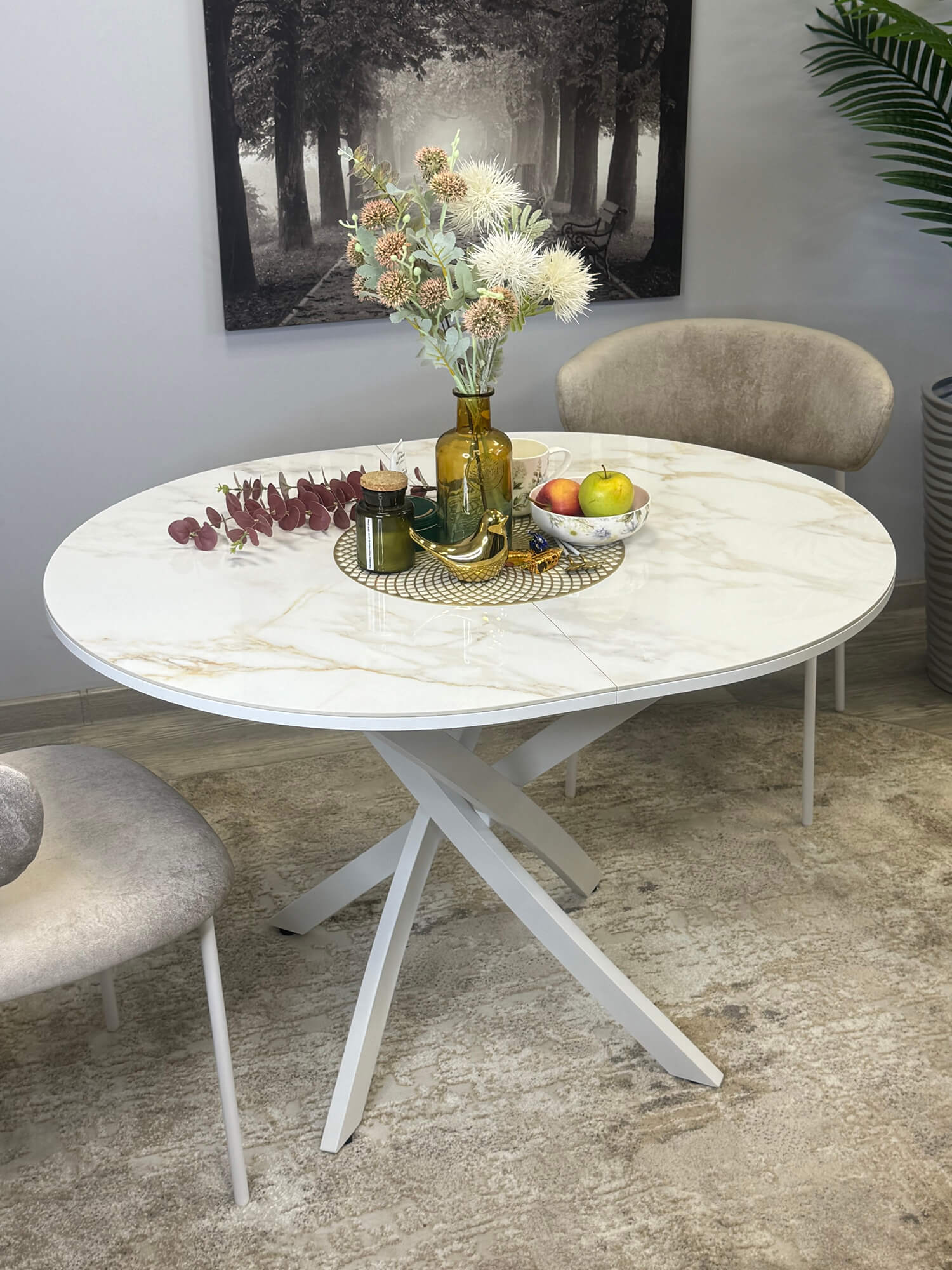 Еще -5% Стол обеденный Kenner R1000 Белый / Мрамор белый