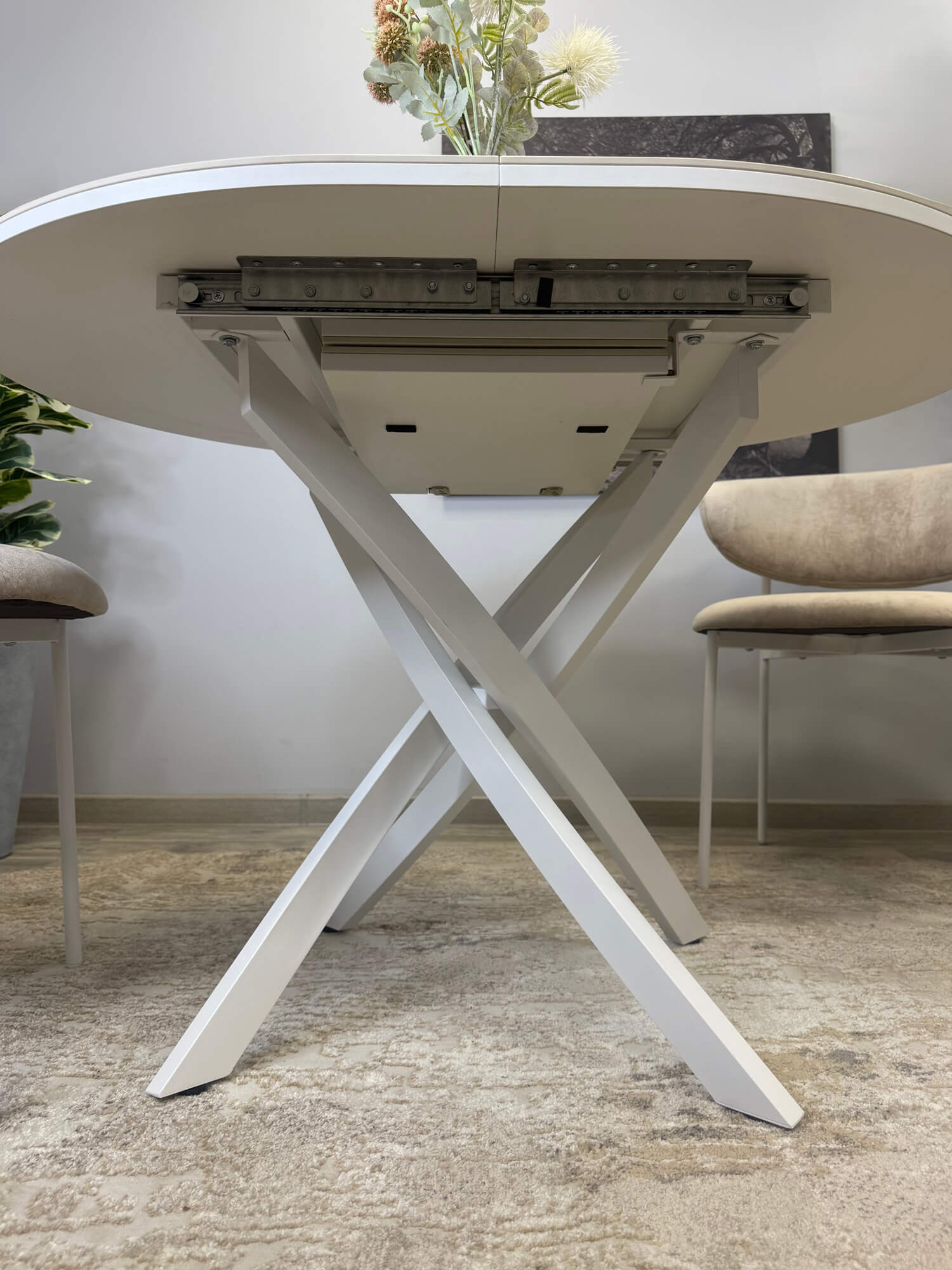 Надежный механизм «бабочка» увеличивает стол на 30 см, что позволяет разместить до 6 человек.