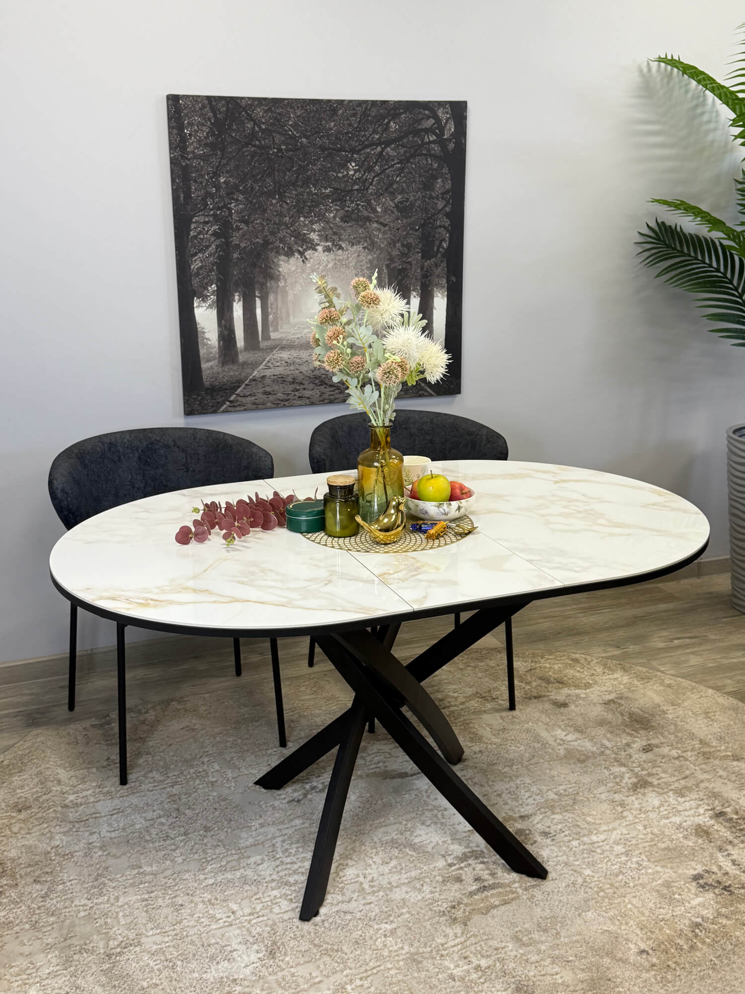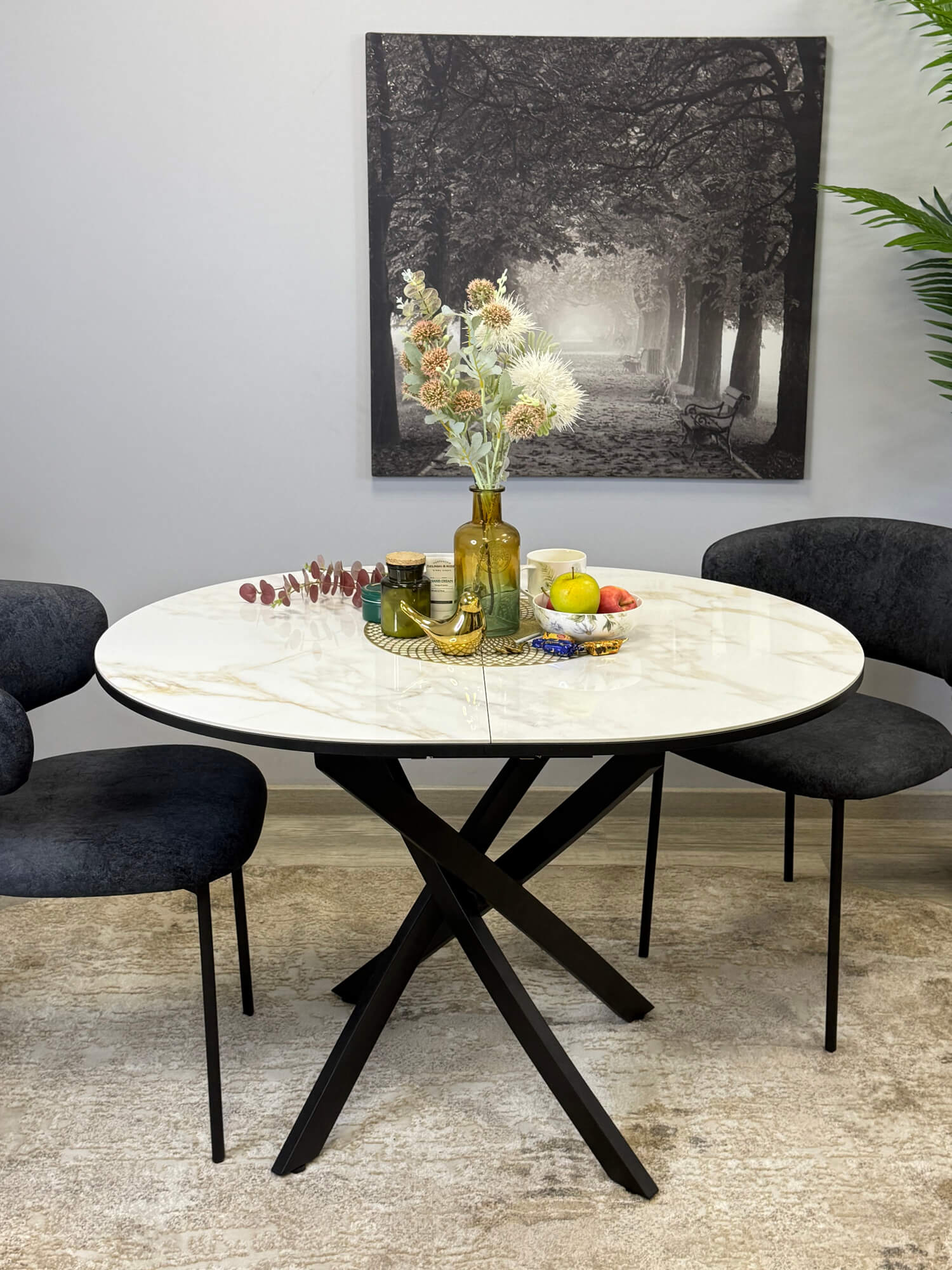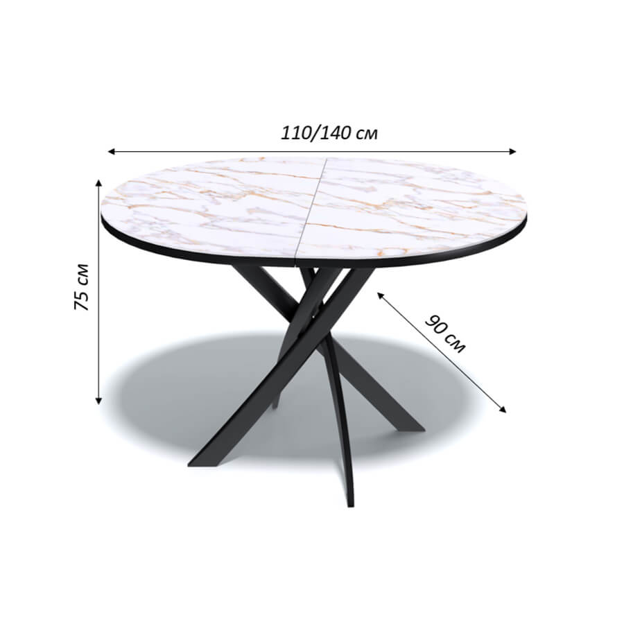 Еще -5% Стол обеденный Kenner R1000 Черный / Мрамор белый