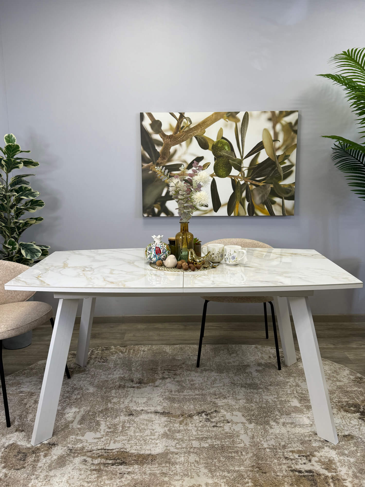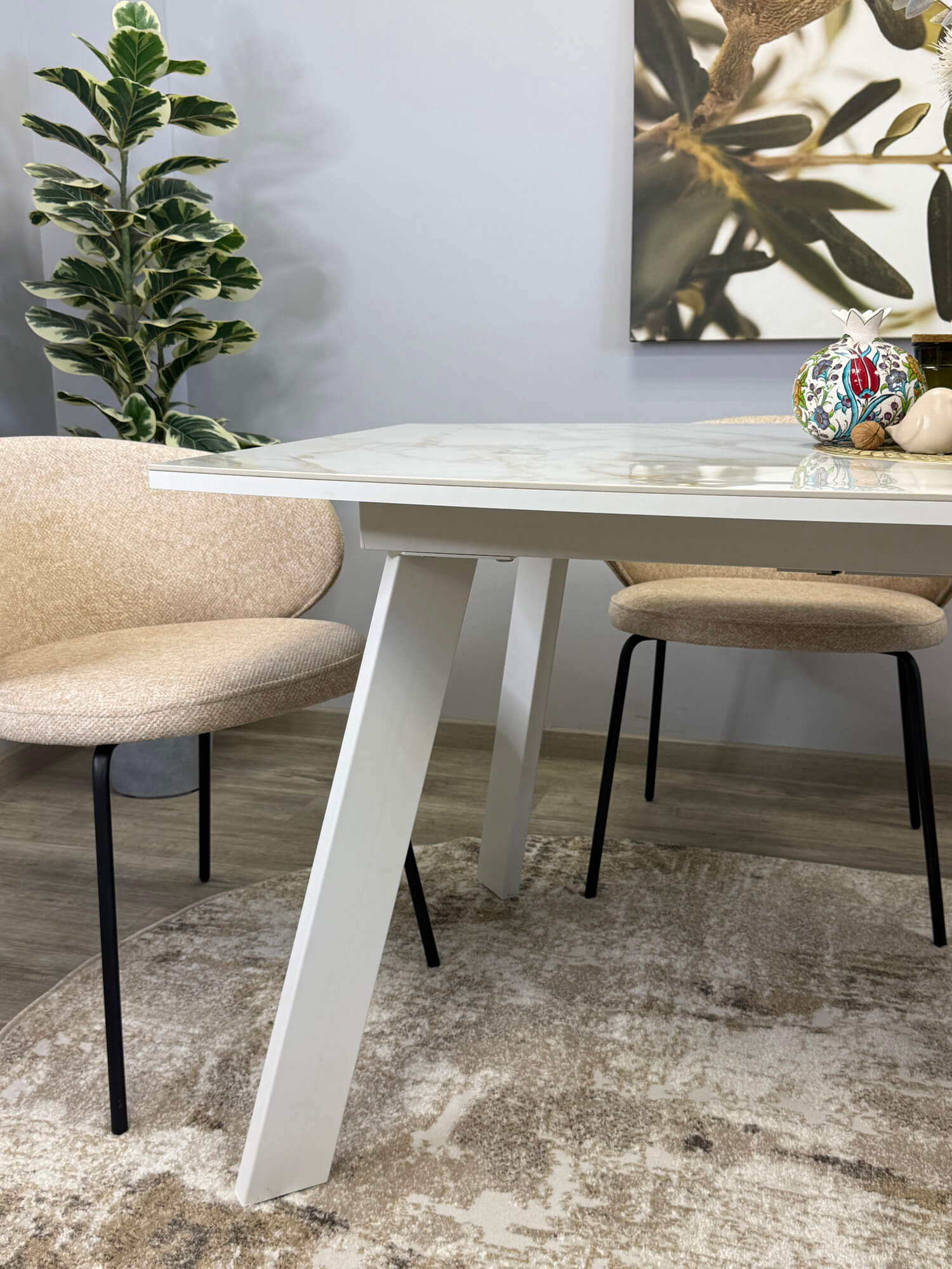 Еще -5% Стол обеденный Kenner BL1300 Белый / Мрамор белый
