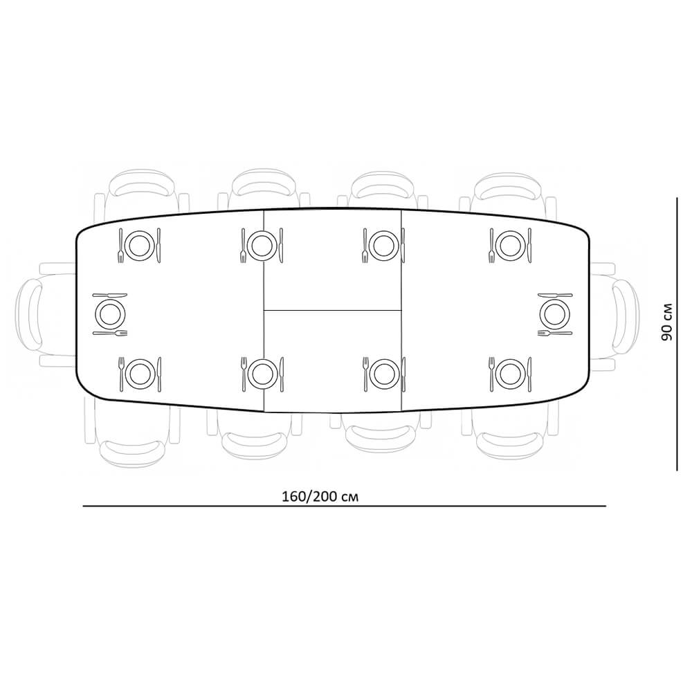 Стол отличается компактными габаритами в сложенном виде и удобен для ежедневного использования. Благодаря механизму трансформации при необходимости за ним можно комфортно разместить до 10 человек. Благодаря расположению ножек за столом хватит места даже для двух крупных кресел. Столешница стола выполнена из натуральной керамики.
