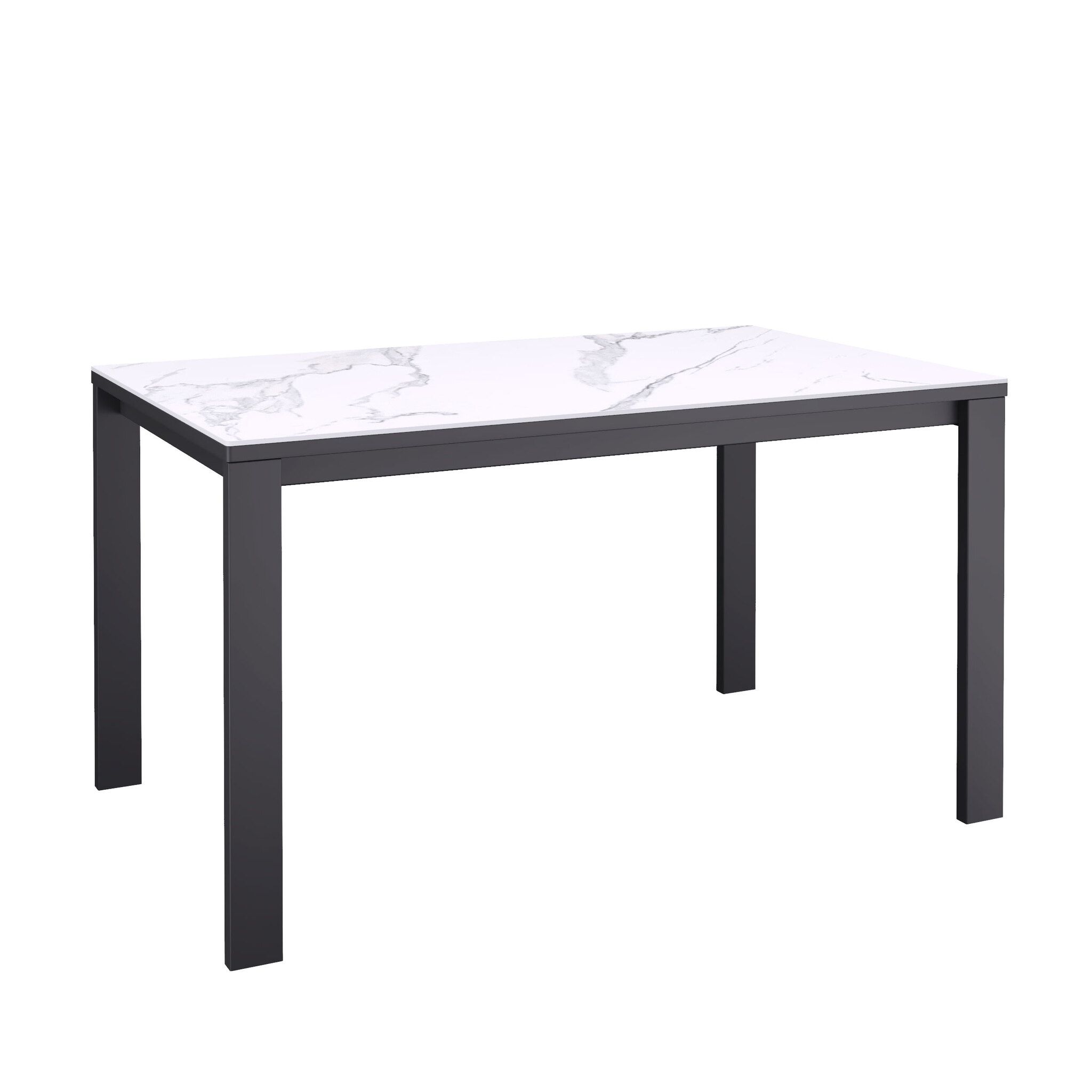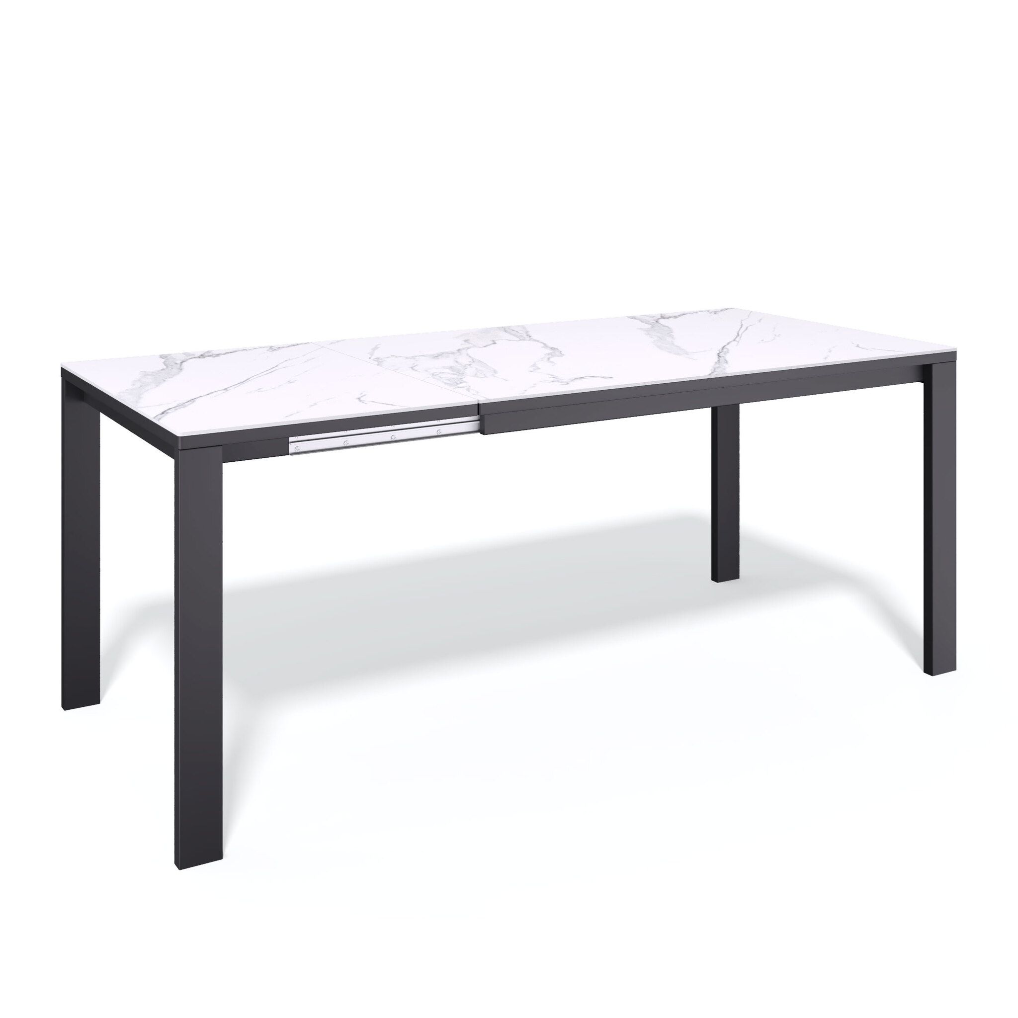 Столешница с покрытием из натуральной керамики толщиной 5,6 мм имеет безопасные скругленные углы. Благодаря окрашиванию в массе торец столешницы не отличается от основного покрытия. Кромка отполирована до идеальной гладкости, рисунок на разных частях стола совпадает. Рама раскладывается вместе с опорами, что оставляет максимальное пространство для ног. Стол обладает высокой устойчивостью.