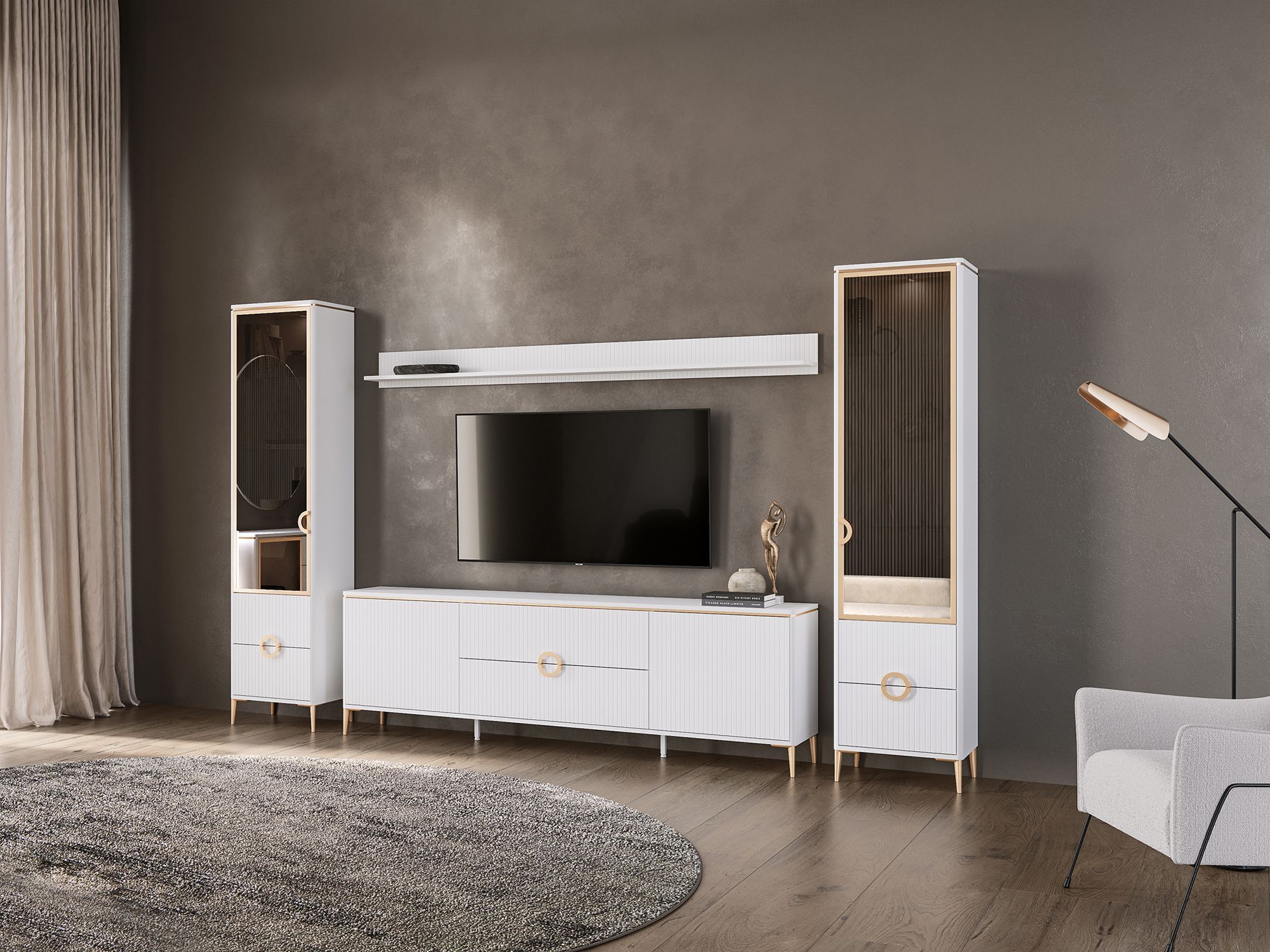 Коллекция включает мебель в едином стиле для гостиных и спален, что позволяет сформировать функциональные зоны, соответствующие индивидуальным предпочтениям, и найти гармоничные интерьерные решения как для типовой, так и для нестандартной планировки.