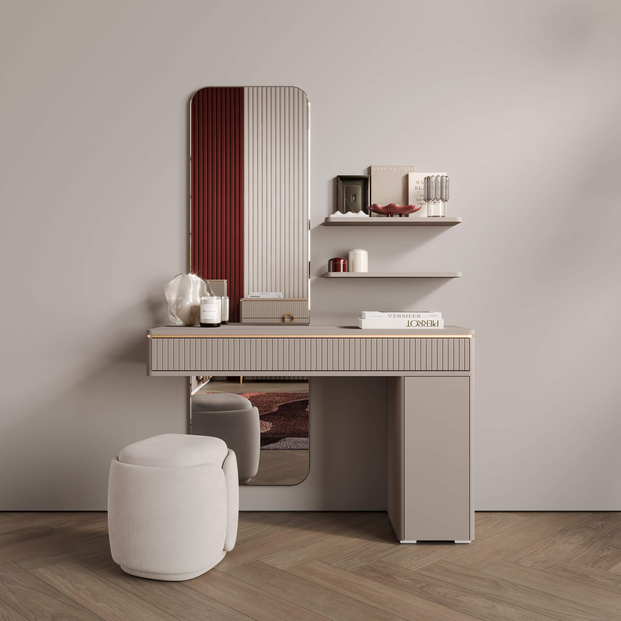 Фасады и внешние элементы корпуса изготавливаются из МДФ с многослойным покрытием премиальной матовой эмалью производства RENNER (Италия). Безупречно ровные поверхности создают мягкое мерцание и обладают приятной тактильностью.